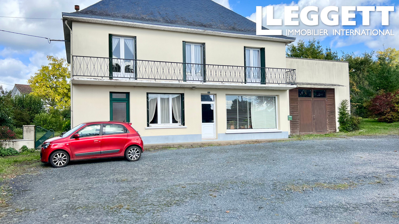 A38993CHT87 - Cette propriété située en Haute-Vienne, en France, est une maison spacieuse de deux étages avec un toit en ardoise traditionnel et une façade simple et épurée. Elle comprend :