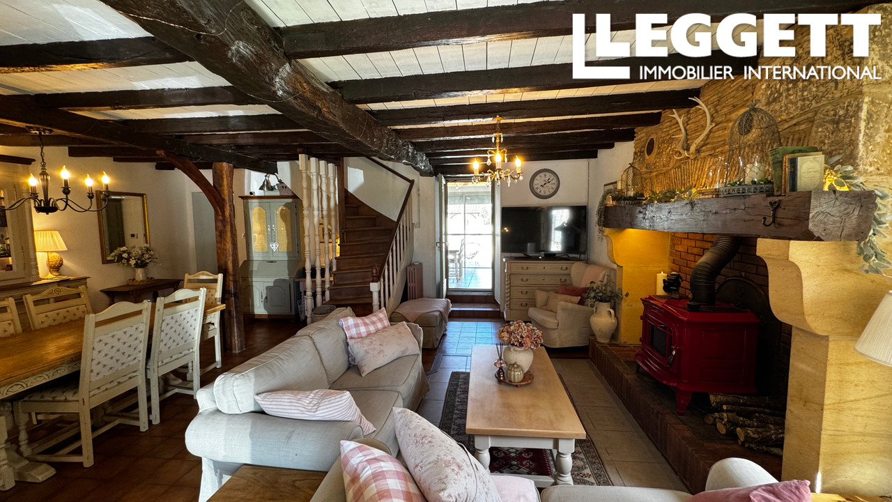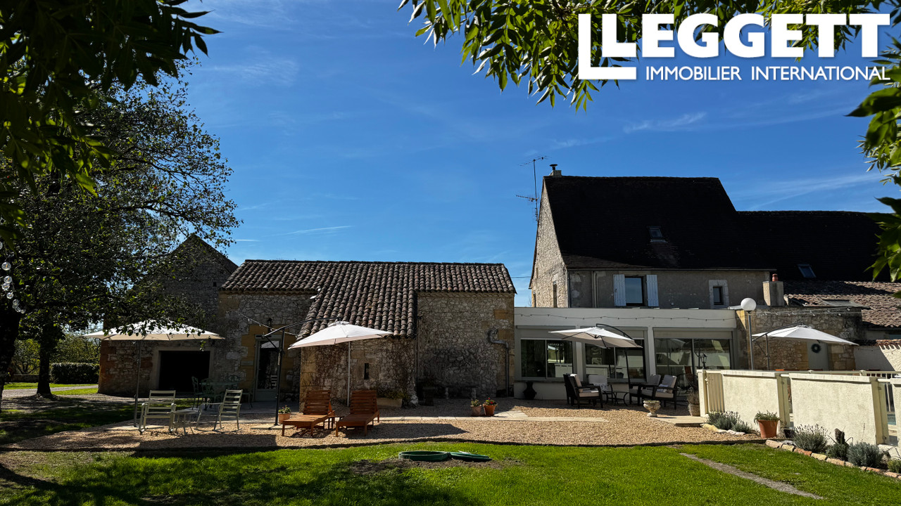 A40383SIJ24 - Située dans un village paisible, cette maison en pierre allie charme traditionnel et confort moderne. La maison principale offre un intérieur chaleureux avec poutres apparentes, poêle à bois et un séjour lumineux ouvrant sur le jardin et la terrasse avec piscine.