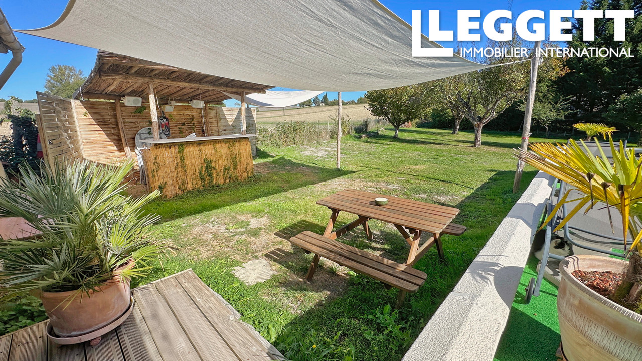 Sur le côté de la maison principale se trouve une terrasse avec un store. Un bar est également disponible à côté de la piscine et le jardin est très bien entretenu. Un parking à l'arrière de la maison peut accueillir 2 à 3 voitures.