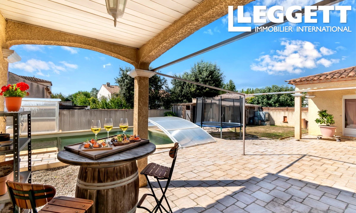 A40199JAV11 - À Coursan, charmant village à quelques min de Narbonne et des plages méditerranéennes, cette villa familiale indépendante de 168 m² (2001) allie confort moderne et douceur de vivre. Édifiée sur un terrain clos de 1 000 m² avec piscine 6 × 10 m, jardin, terrasses, garage double et stationnements, elle est idéale pour la vie familiale et la convivialité.
