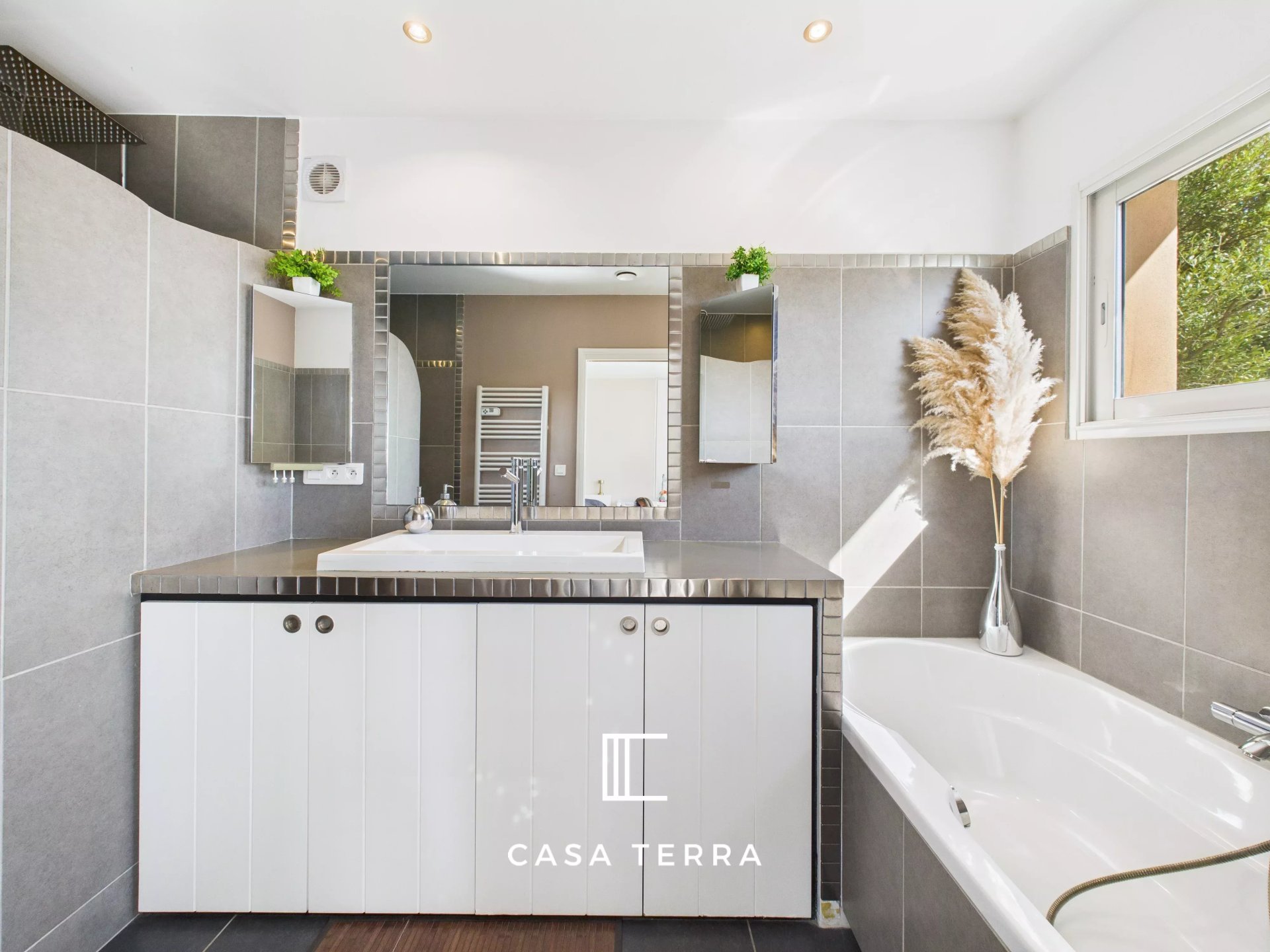 En rez-de-jardin, la villa propose un studio indépendant de 47 m² habitable offrant ainsi un espace idéal pour accueillir famille et amis en toute intimité ou bien générer des revenus locatifs.