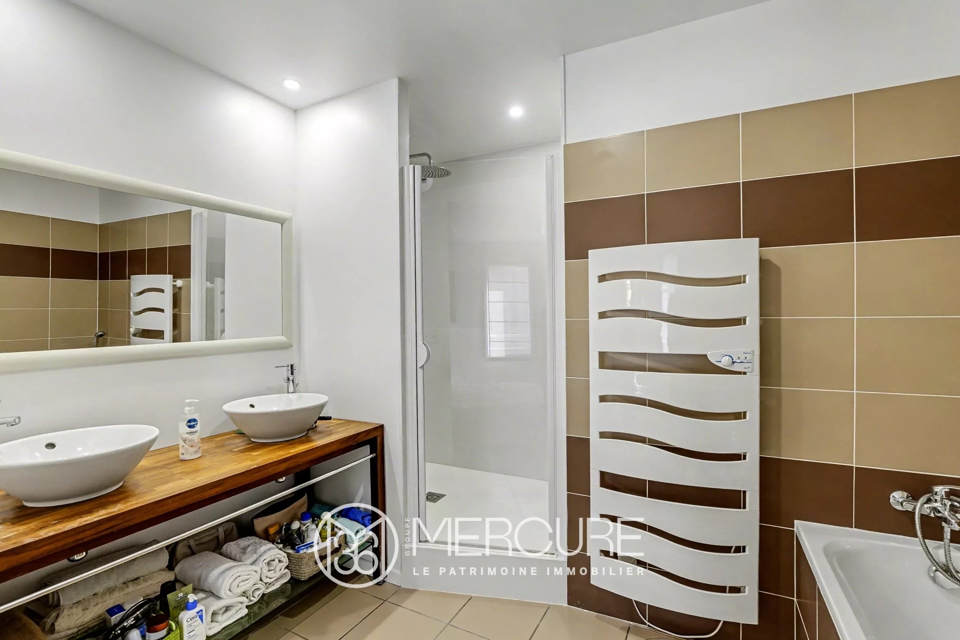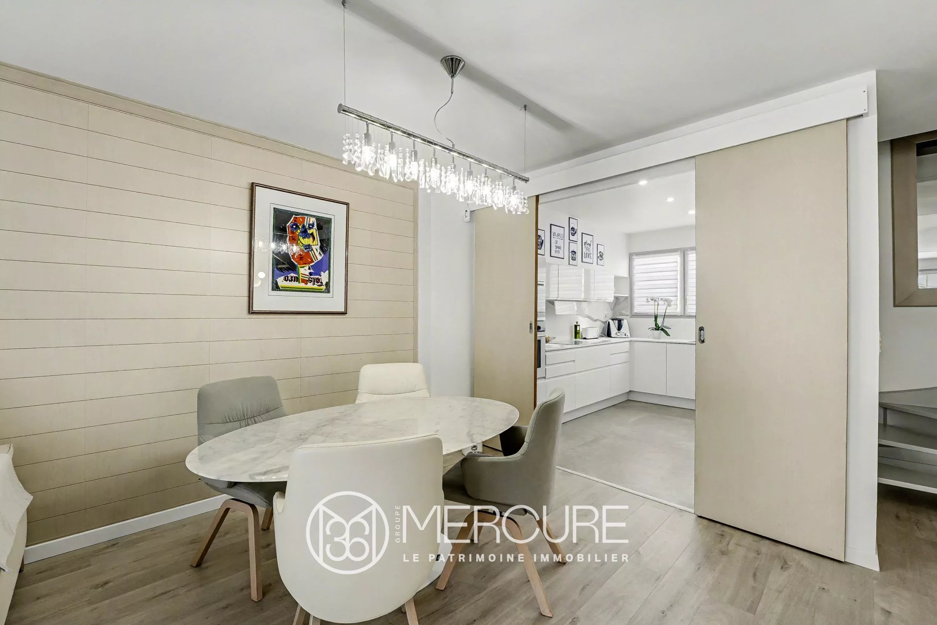 Le premier étage accueille un lumineux salon/salle à manger donnant accès à une belle terrasse, accessible aussi bien de l’intérieur que de l’extérieur. La cuisine récente, entièrement équipée et baignée de lumière, est complétée par une arrière-cuisine fonctionnelle.