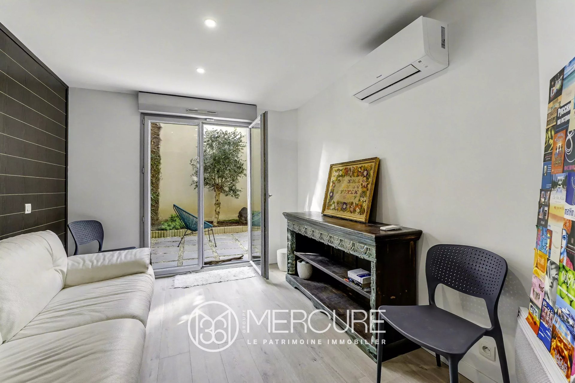 Au rez-de-chaussée, vous trouverez une entrée ainsi qu’une pièce polyvalente pouvant faire office de bureau ou de chambre d’appoint, ouverte sur le jardin, avec salle d’eau et WC attenants.