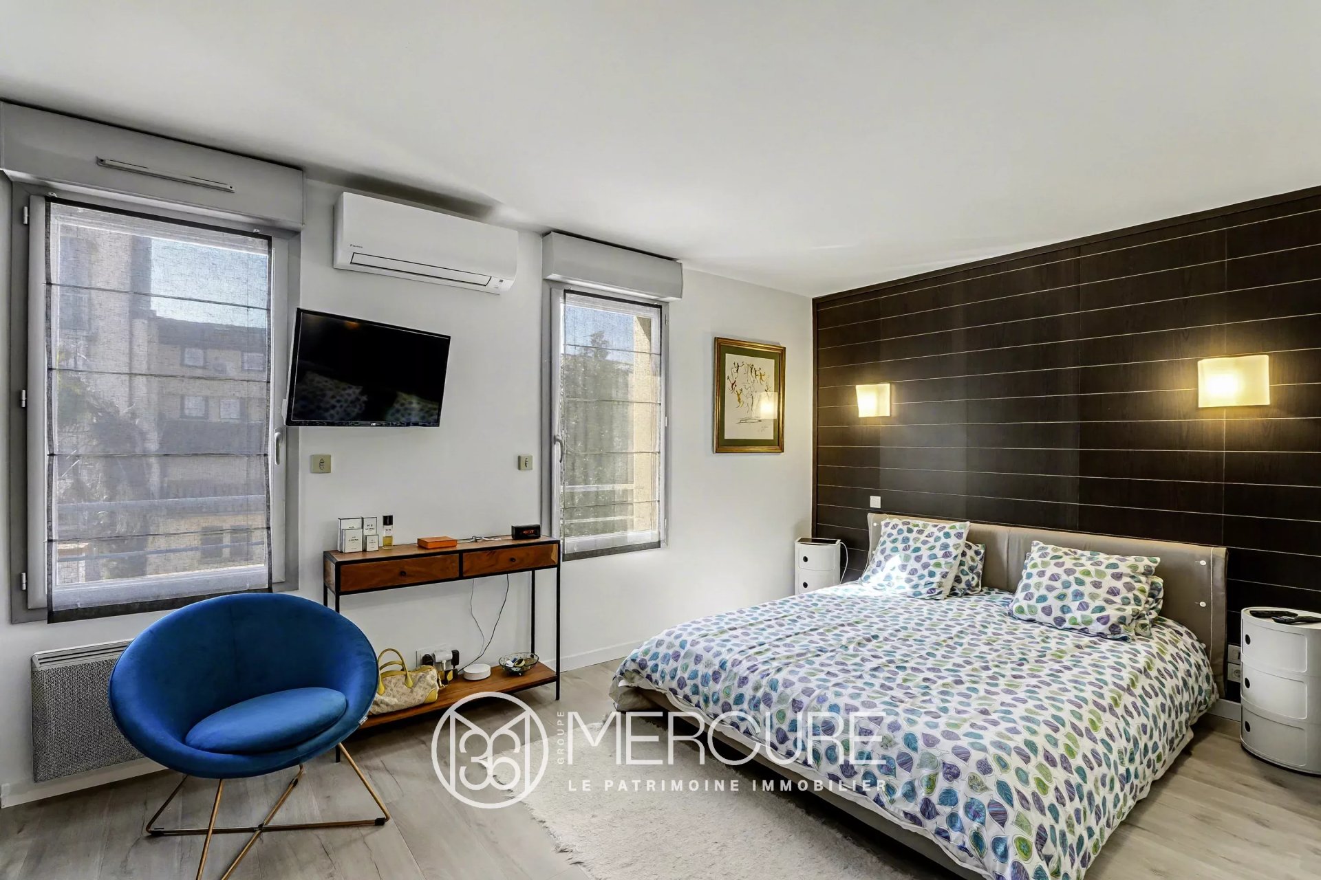 Au deuxième étage, une suite parentale confortable dispose d’une salle de bain complète (baignoire et douche), d’un dressing et d’un bureau.