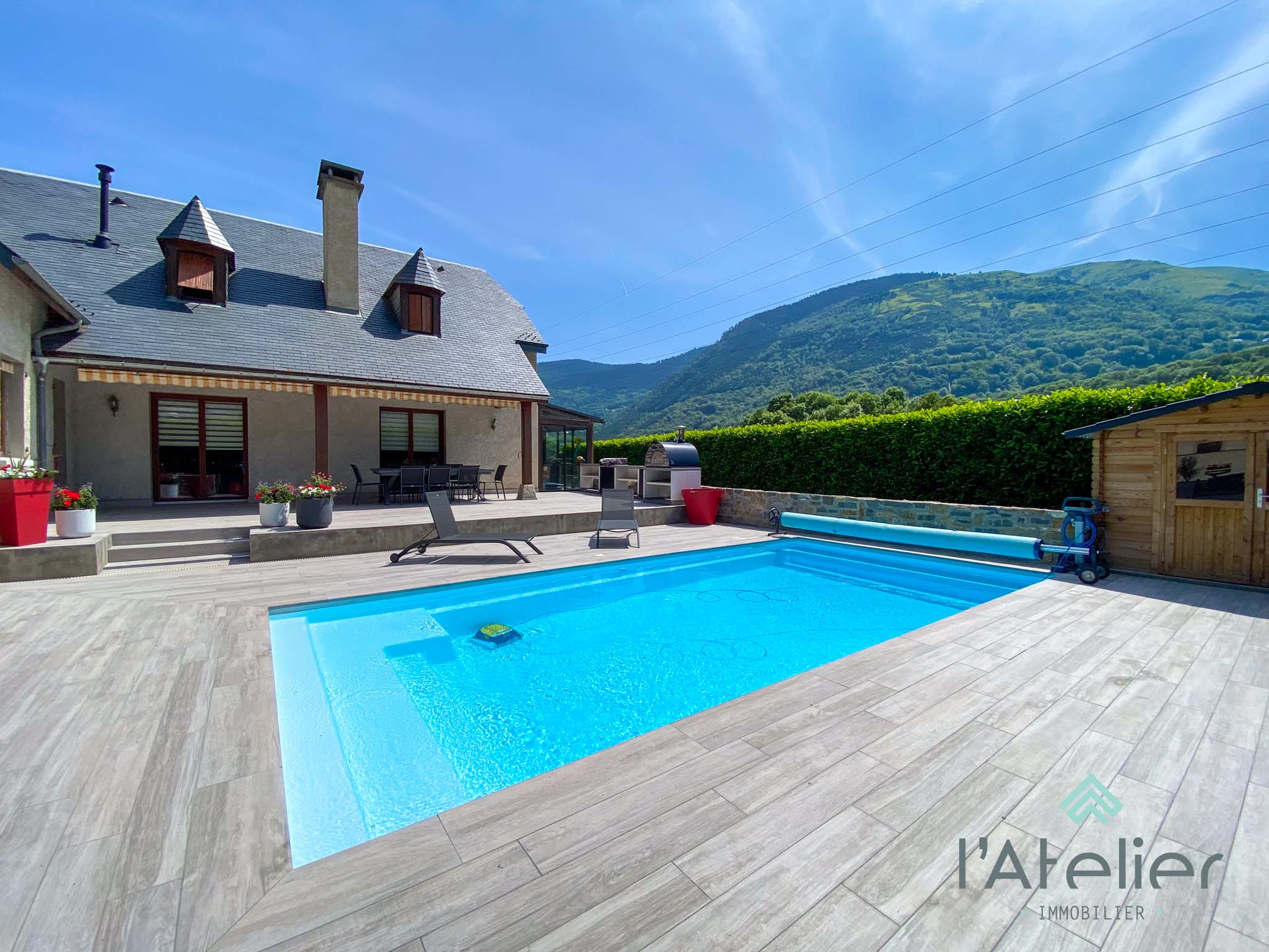 Datant des années 88-90, elle a été très joliment rénovée et elle offre mille potentialités que vous soyez en quête d'une résidence principale comme secondaire. Vous serez immédiatement charmés par la piscine chauffée et sa pool house avec vue sur les montagnes environnantes, comme une invitation au bonheur de vivre dans nos vallées.