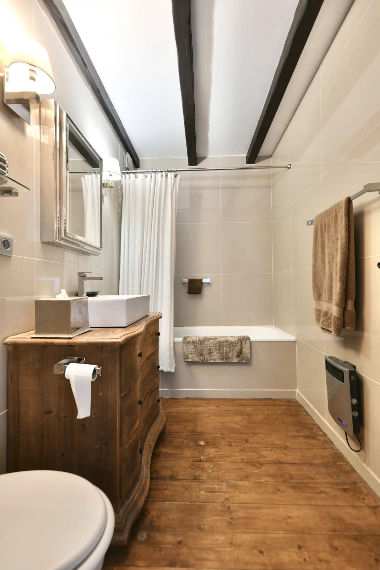 3 chambres, 2 salles de bains. Jardin intime avec piscine 3 x 5 m