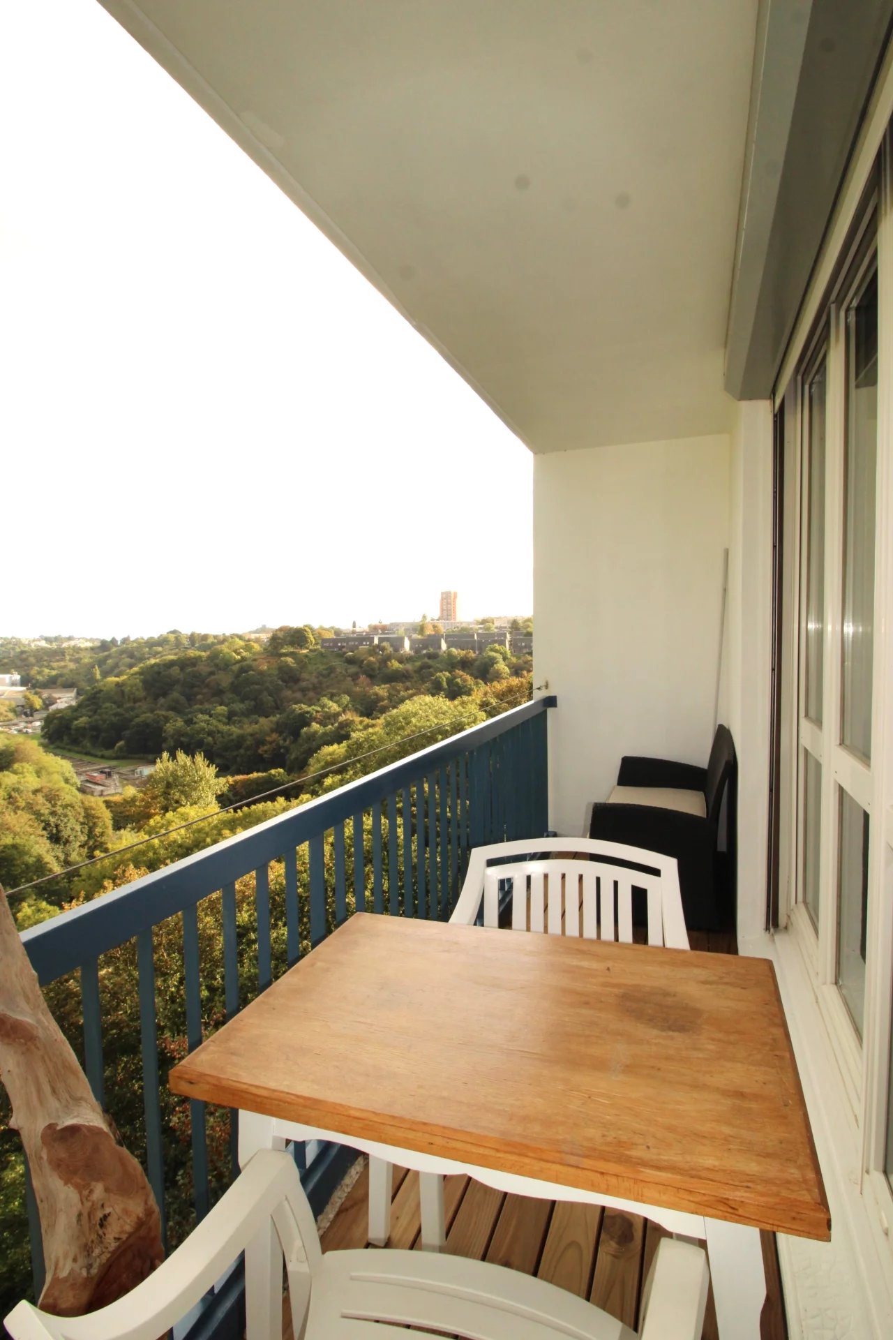 ST BRIEUC, à 3 mns des facultés, bel appartement 5 P. comprenant : entrée avec placard, buanderie, beau séjour salon - cuisine équipée ouvrant sur balcon, dégagement avec placard, 3 chambres, salle d'eau, W.C. - cave et parking couvert