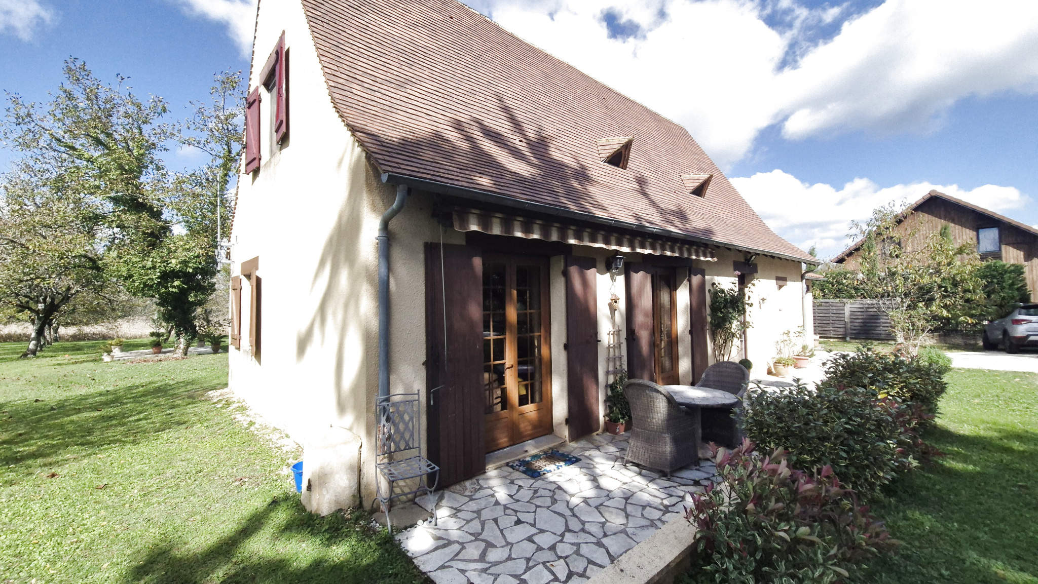 Implantée sur un terrain arboré de 1 470 m2, la propriété offre un cadre paisible et verdoyant, idéal pour profiter de la douceur de vivre périgourdine. Elle dispose de deux terrasses ensoleillées parfaites pour vos repas en extérieur, ainsi que d'un garage.