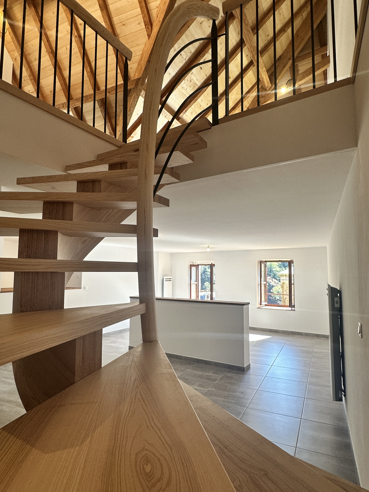 Un loft en triplex, rénové par des artisans locaux avec des matériaux de qualité. Vous y trouverez une loggia avec vue, une vaste pièce de vie avec cuisine équipée, un cellier, un WC, ainsi qu'une superbe chambre de 39 m2 avec salle d'eau attenante.