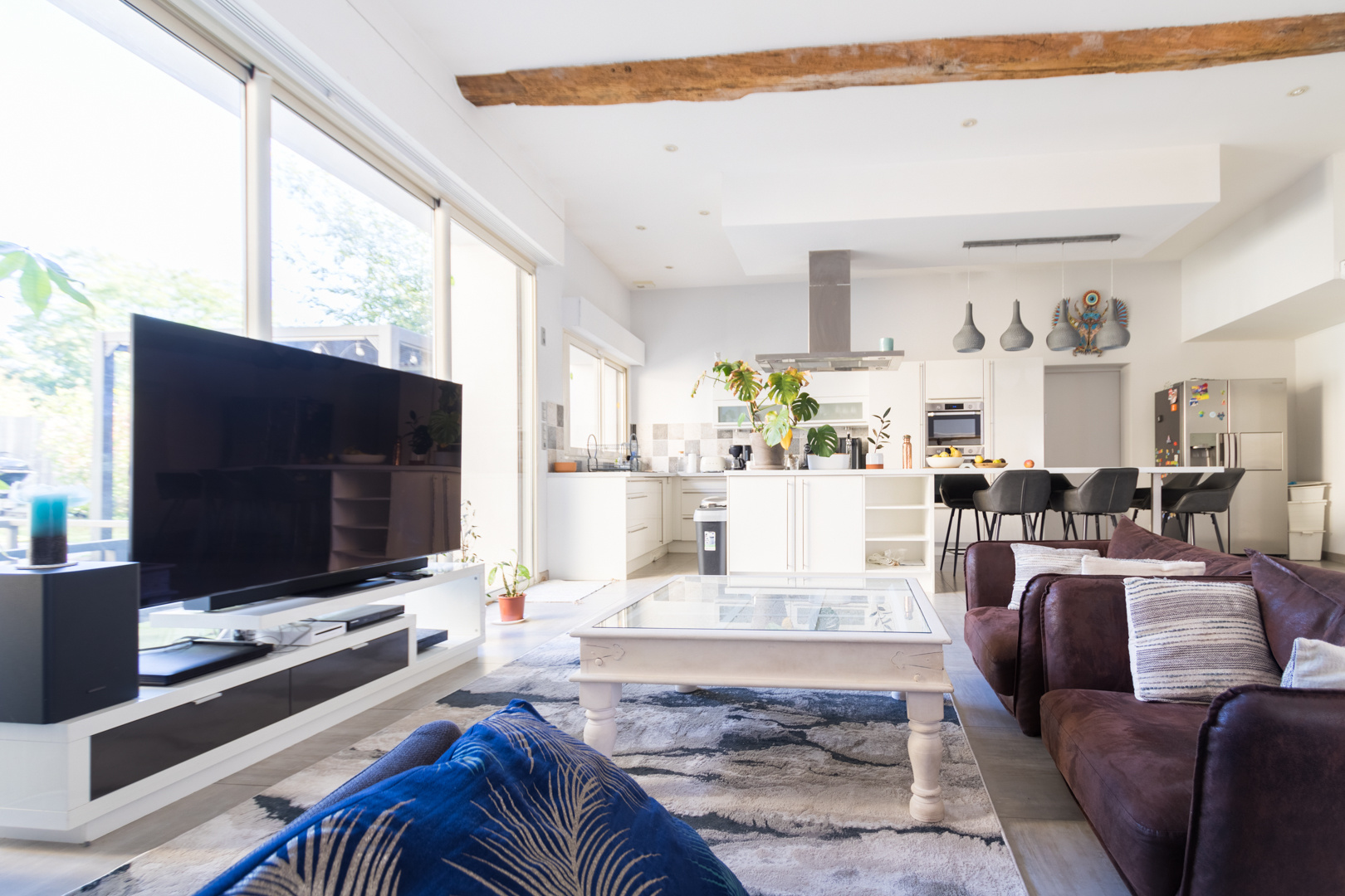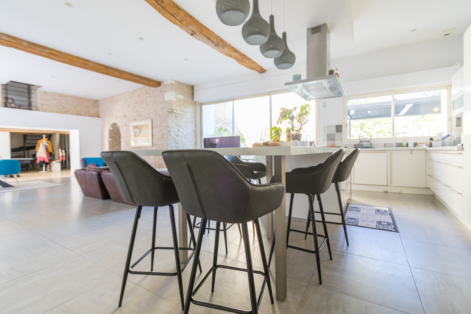 Elle comprend au RDC une grande pièce à vivre avec cuisine ouverte, six chambres, une salle de bains et deux salles d'eau.