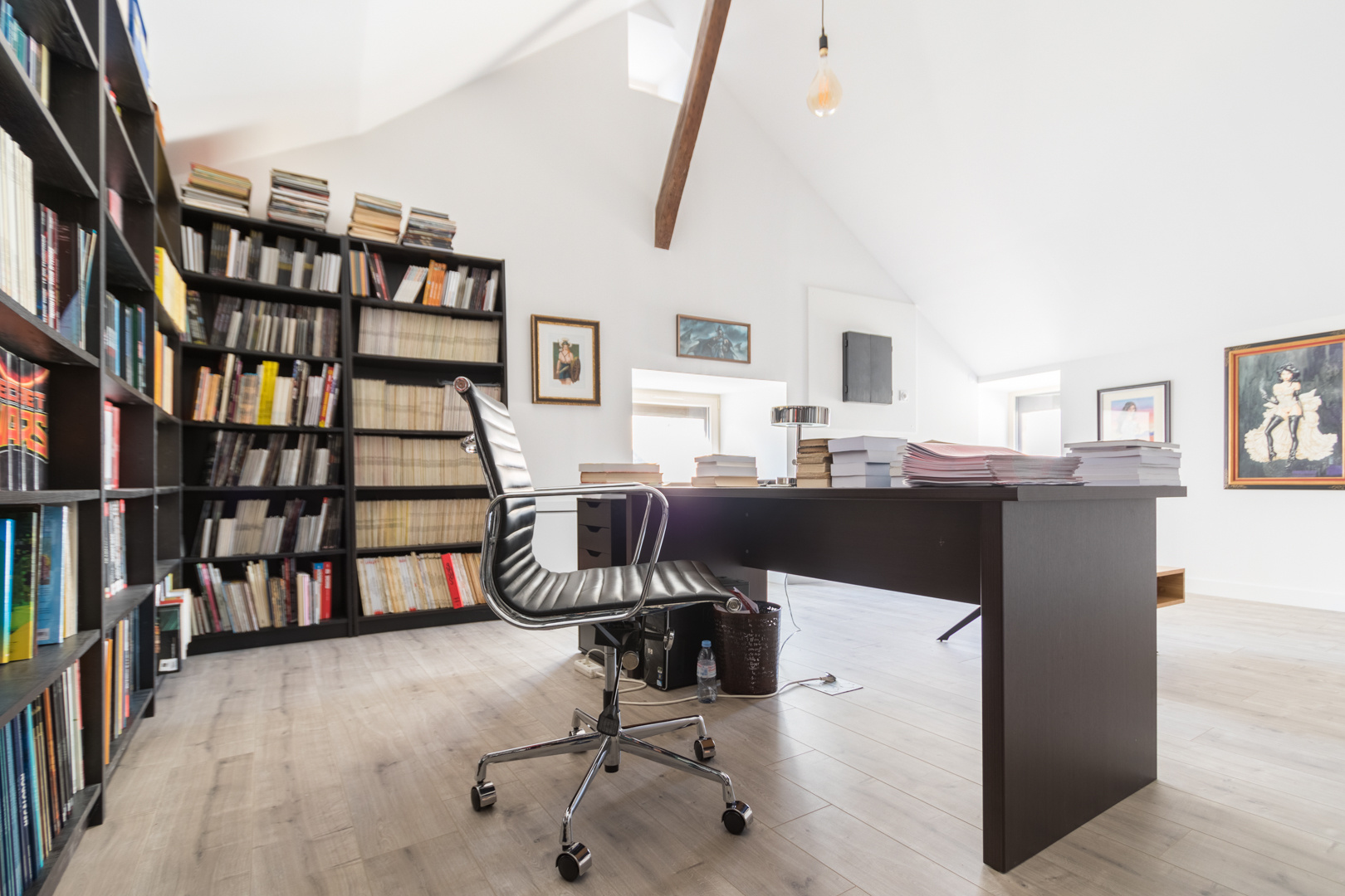 A l'étage, une salle de jeux, une bibliothèque, un grand bureau et une chambre.