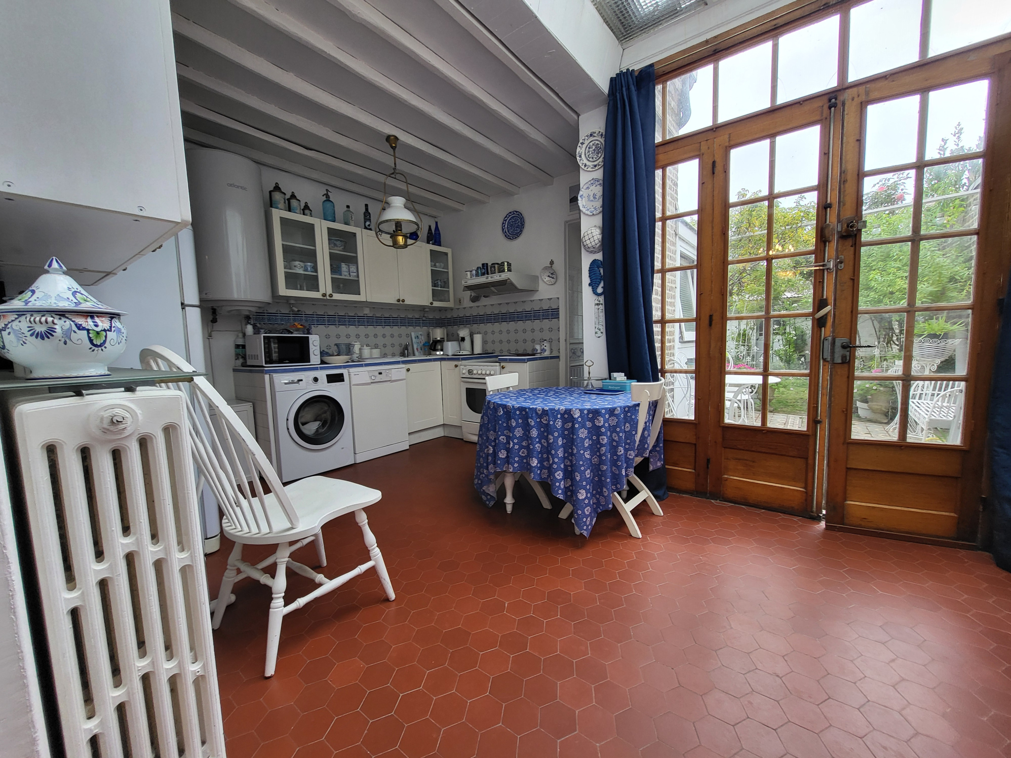 - Au rez-de-chaussée : un couloir, salle / salon ouvert sur cuisine lumineuse, salle de bains et WC, jardin privatif sans vis à vis.