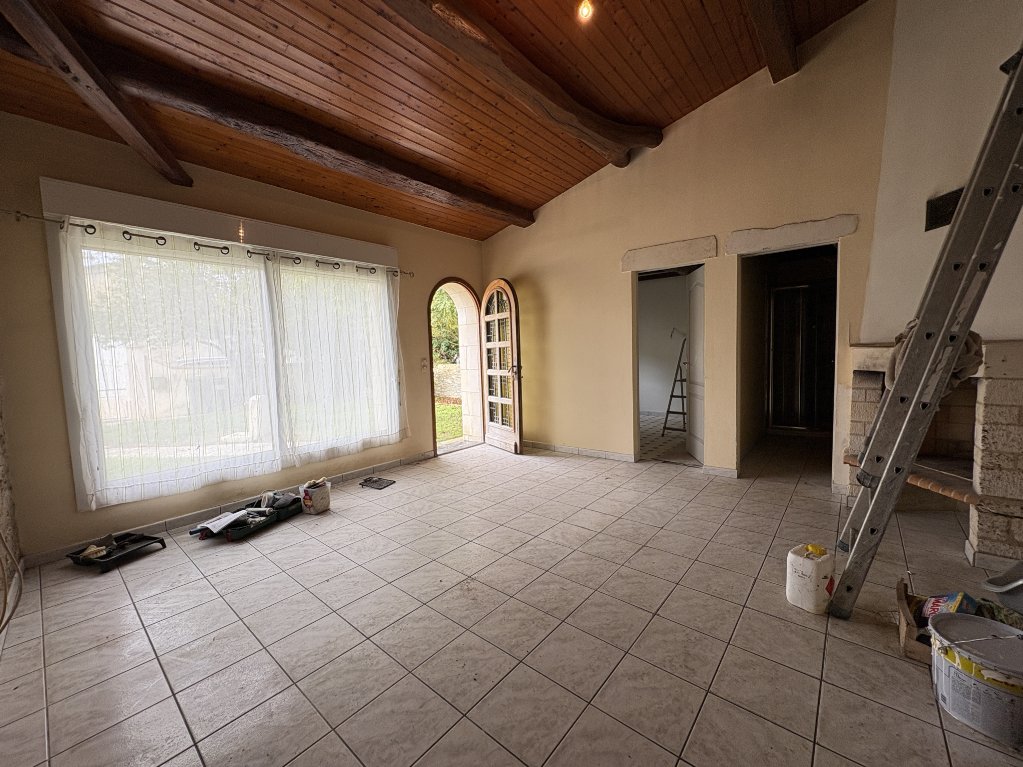 ·Un séjour chaleureux de 20 m2 avec conduit de cheminée, parfait pour recréer une ambiance feu de bois