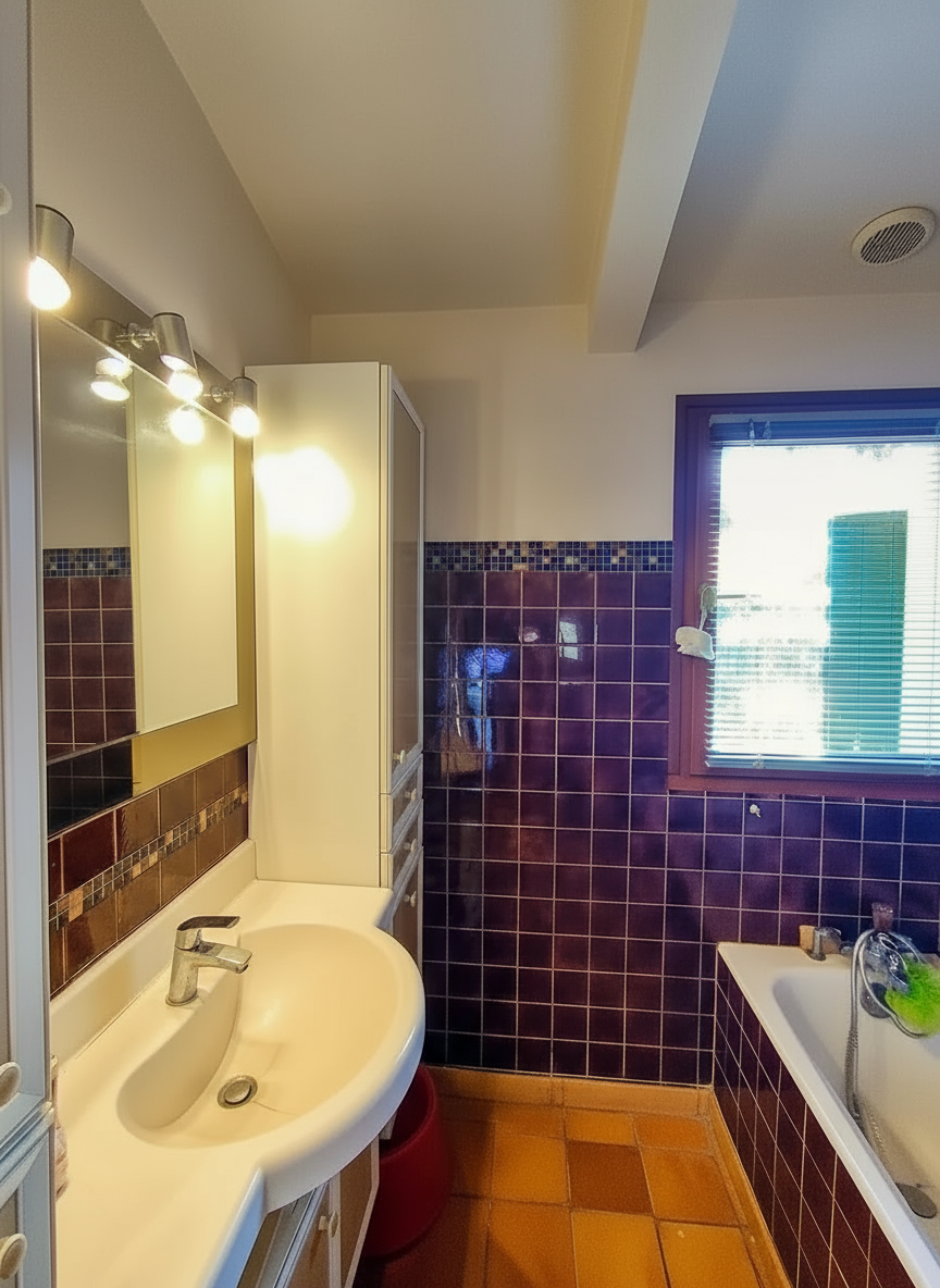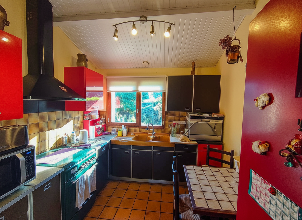 Pascal vous propose (07 88 69 00 07): Originale maison d'architecte d'inspiration méridionale sur plusieurs niveaux. Vous entrez directement dans la pièce à vivre très lumineuse car double exposition. Cheminée et plafond cathédrale. Sur le même niveau: cuisine séparée, chambre avec accès direct au jardin, salle de bain et wc séparé. Par quelques marches, vous accédez à la deuxiéme chambre. Accès à une pièce de rangement, qui avec une fenêtre supplémentaire, donnerait une troisième chambre. Garage, buanderie et cave. Jardin paysagé en coteau ou 'restanque'.