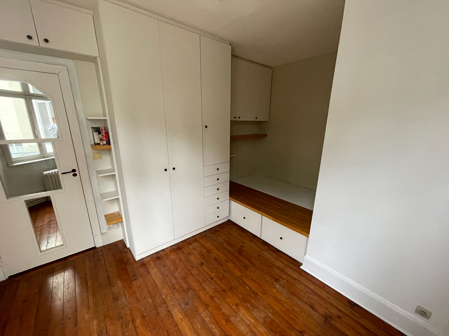 L'appartement s'ouvre sur un sas d'entrée qui distribue les pièces. Sur la gauche, une cuisine équipée et lumineuse, sur la droite, un grand séjour avec parquet préservant le cachet d'origine.
