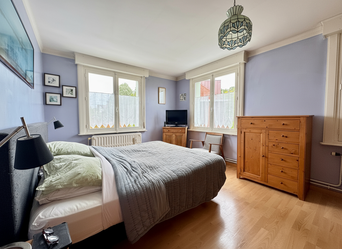 Au rez-de-chaussée, unbeau double séjour traversant avec poêle à bois crée une atmosphère conviviale et chaleureuse. La cuisine équipée prolonge naturellement l'espace.