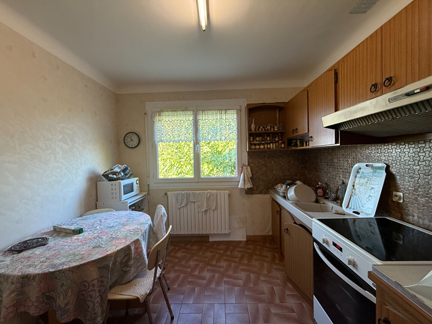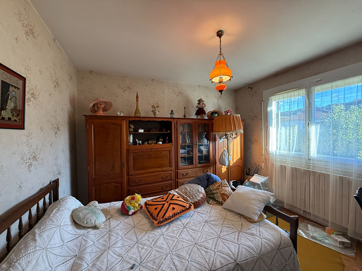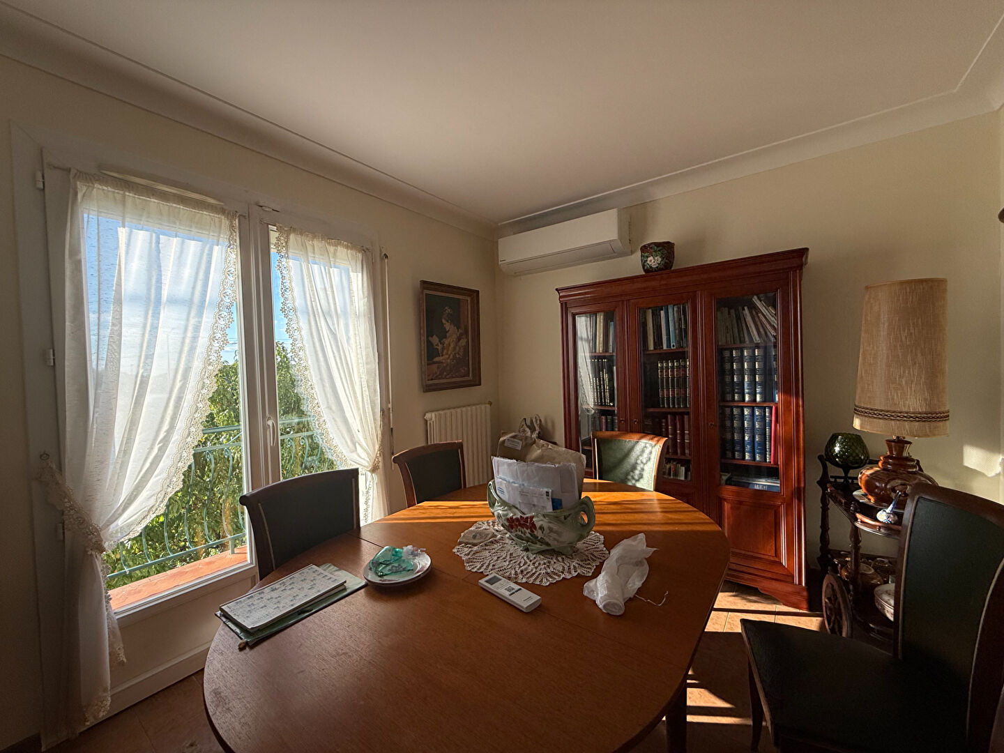 Elle se compose à l'étage d'une entrée desservant un salon/séjour lumineux avec climatisation (avril 2025) et insert ainsi qu'un accès au balcon, une cuisine indépendante, deux chambres, une salle de bains et un wc indépendant.
