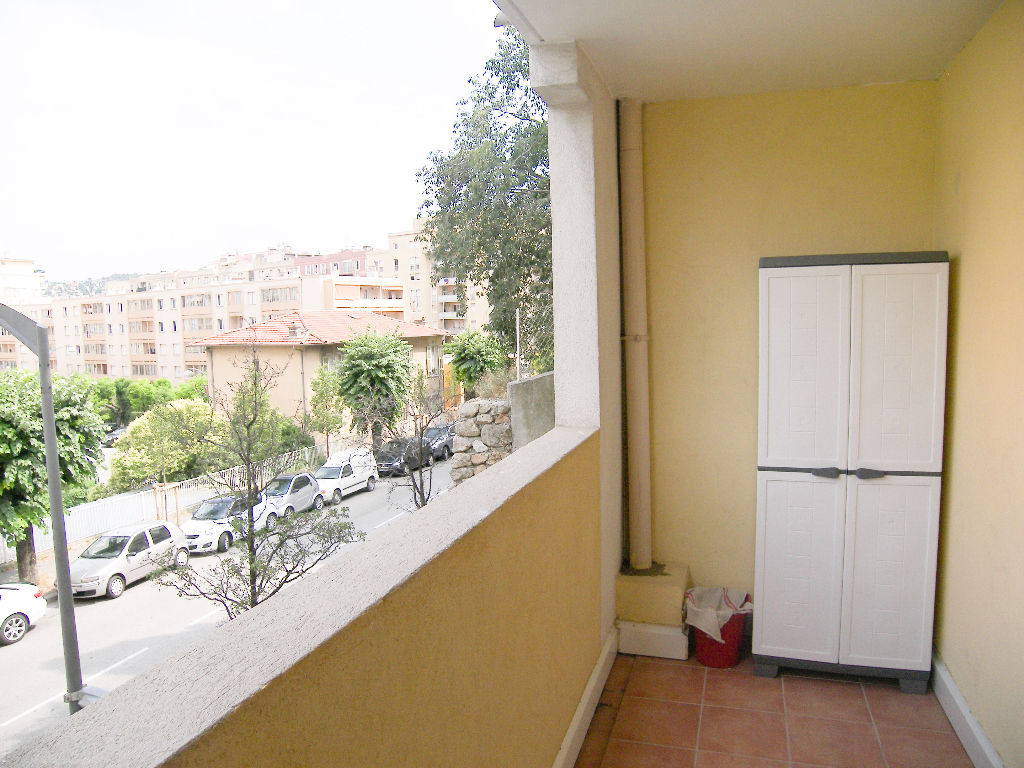 Nice Pasteur, proche Hôpital Pasteur 2, beau studio, au premier étage d'un immeuble récent, composé d'une entrée avec grand placard, séjour avec kitchette, salle de douche, et loggia