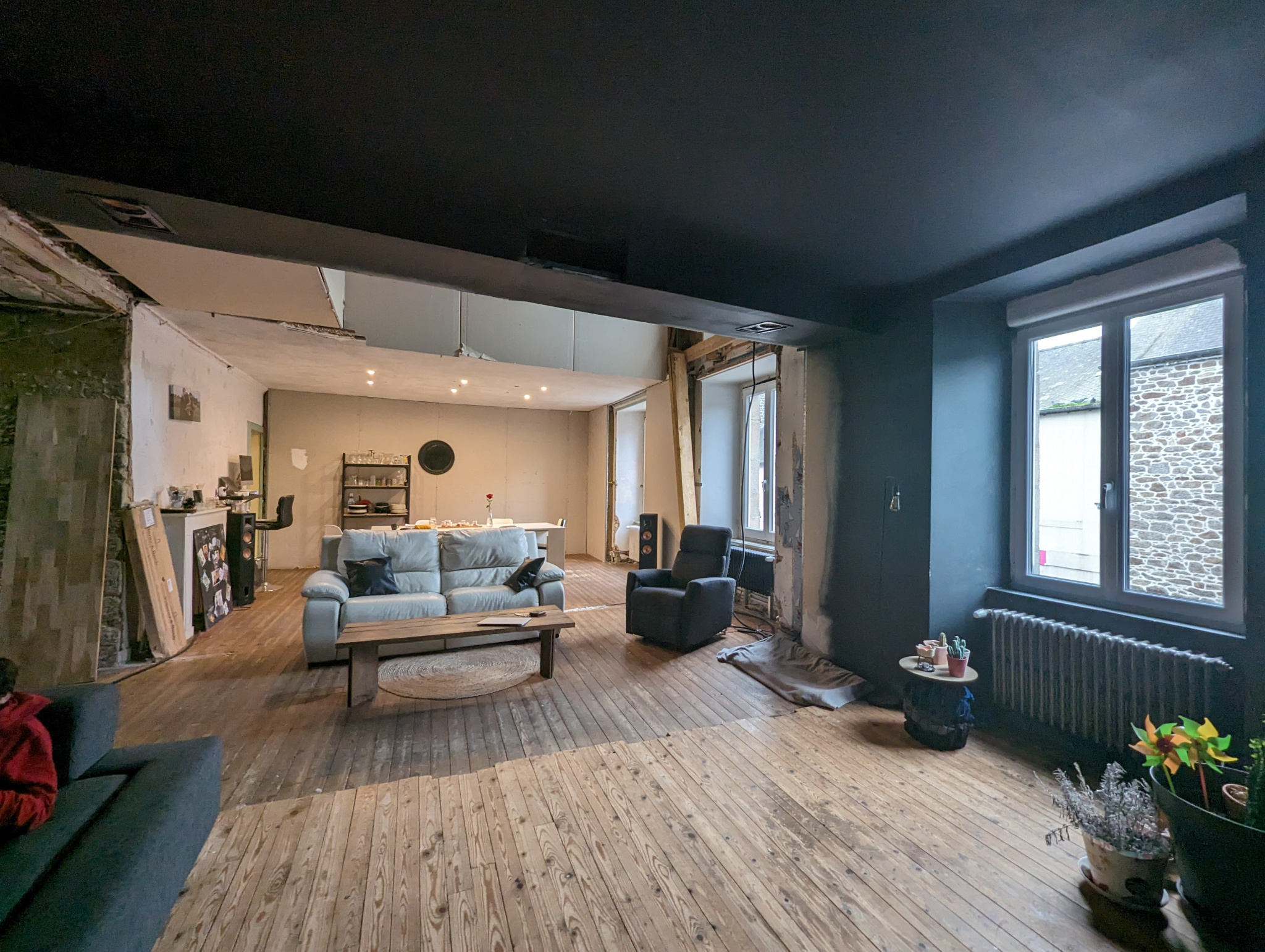 ARMOR CONSEIL IMMOBILIER: Vanessa SAMSON vous offre l'opportunité d'acquérir cette vaste maison de centre-ville avec dépendances et cellule commerciale. L'immeuble à finir de rénover se compose au premier étage d'un palier desservant une cuisine aménagée, une vaste pièce de vie sur plancher bois et exposée plein SUD de plus de 53 m2, un WC et une salle d'eau. Un palier et 4 chambres au second étage, ainsi qu'un grenier aménageable au-dessus. Une dépendance en pierre offrant de nombreuses possibilités ainsi qu'un puits sur un terrain total de 603 m2. Matériaux de qualité sur place afin de vous permettre d'achever les travaux . A VOS PROJET !!!