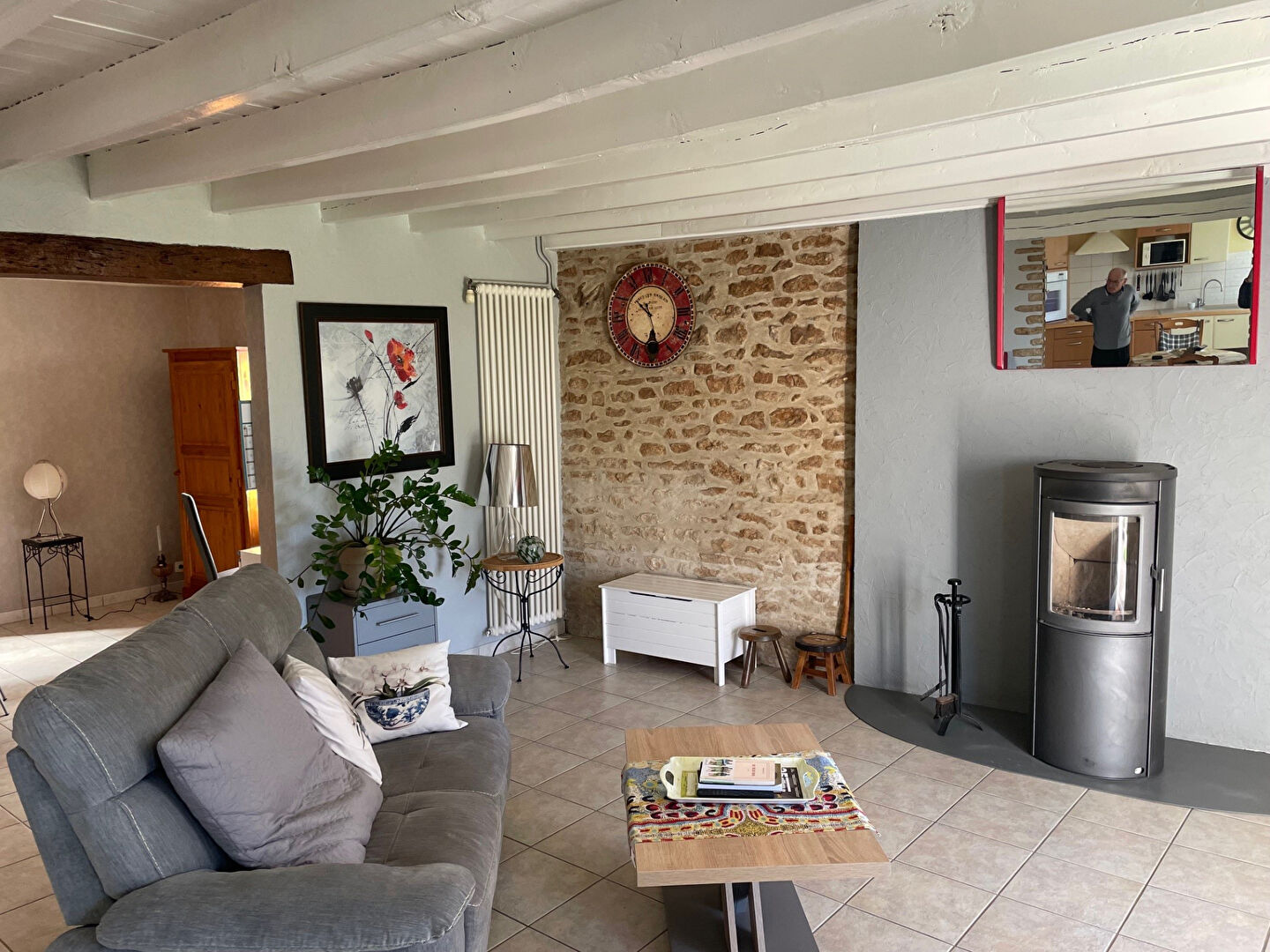 Maison au calme comprenant : une cuisine aménagée et équipée ouverte sur salon séjour avec poêle a bois , cellier, arrière cuisine , wc , salle d'eau, chambre parentale avec salle d 'eau et wc, deux bureaux , chambre, chaufferie, buanderie . Grenier aménageable de 43 m² environ. Cave, garage attenant , le tout sur un terrain de 390m² environ. Autre terrain non attenant .Panneaux solaires , adoucisseur.