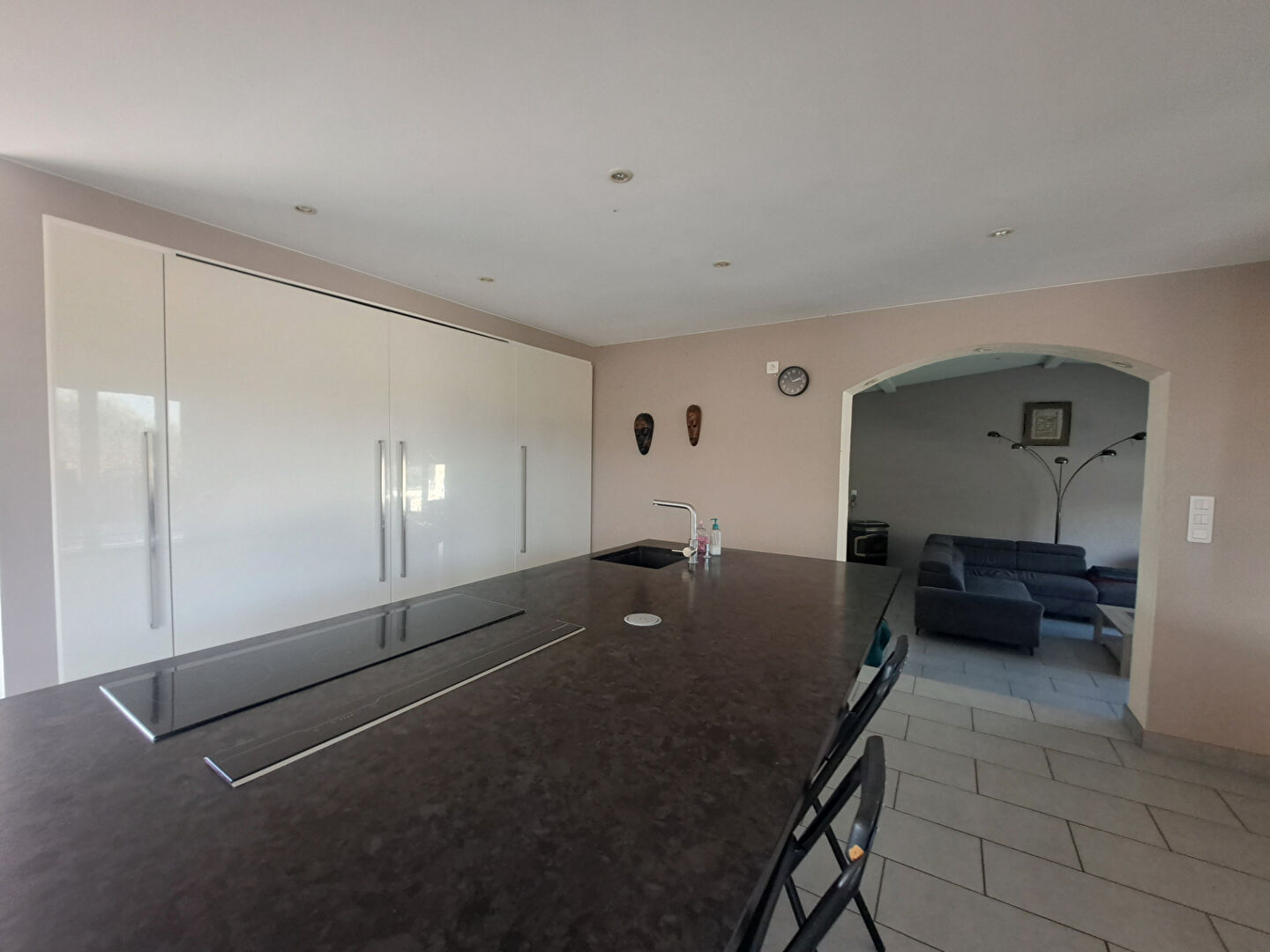 Dès l'entrée, vous découvrirez un vaste salon/séjour lumineux, idéal pour recevoir ou partager de bons moments en famille. La pièce de vie s'ouvre sur une cuisine moderne entièrement ouverte, parfaitement intégrée à l'espace salle à manger pour une ambiance conviviale et chaleureuse.