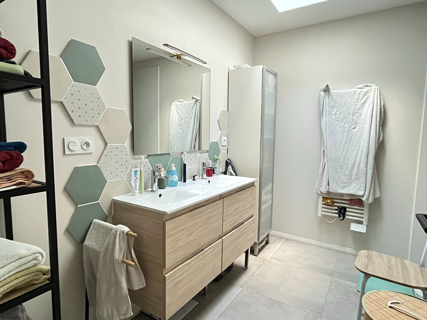 Vous bénéficierez de prestations idéales pour être confortablement installer avec une climatisation réversible, un chauffe-eau thermodynamique et un assainissement relié au tout à l'égout.