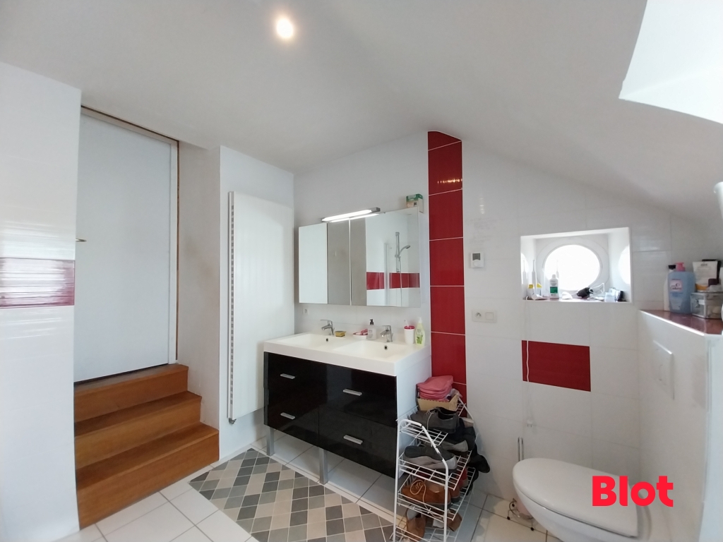 Le dernier niveau, niché sous une magnifique charpente apparente, offre deux chambres supplémentaires et une salle d'eau avec WC indépendant – un espace idéal pour les adolescents, les invités ou un bureau inspirant.