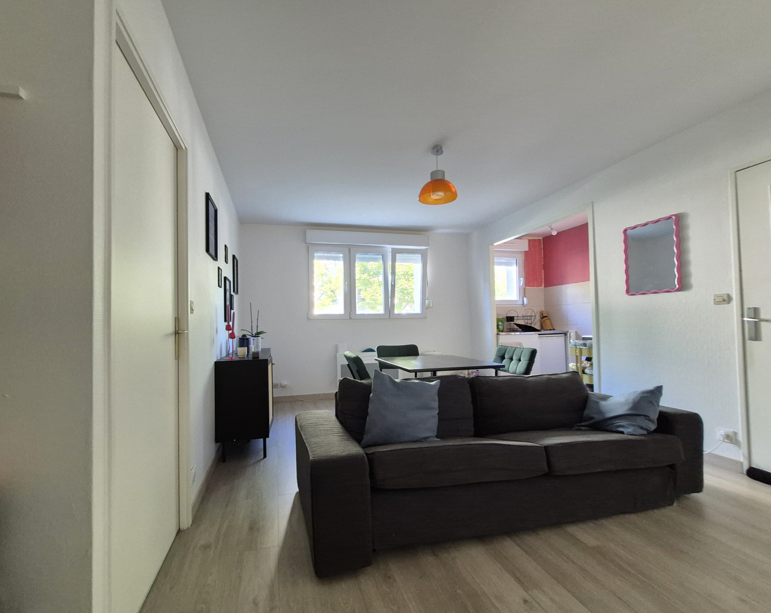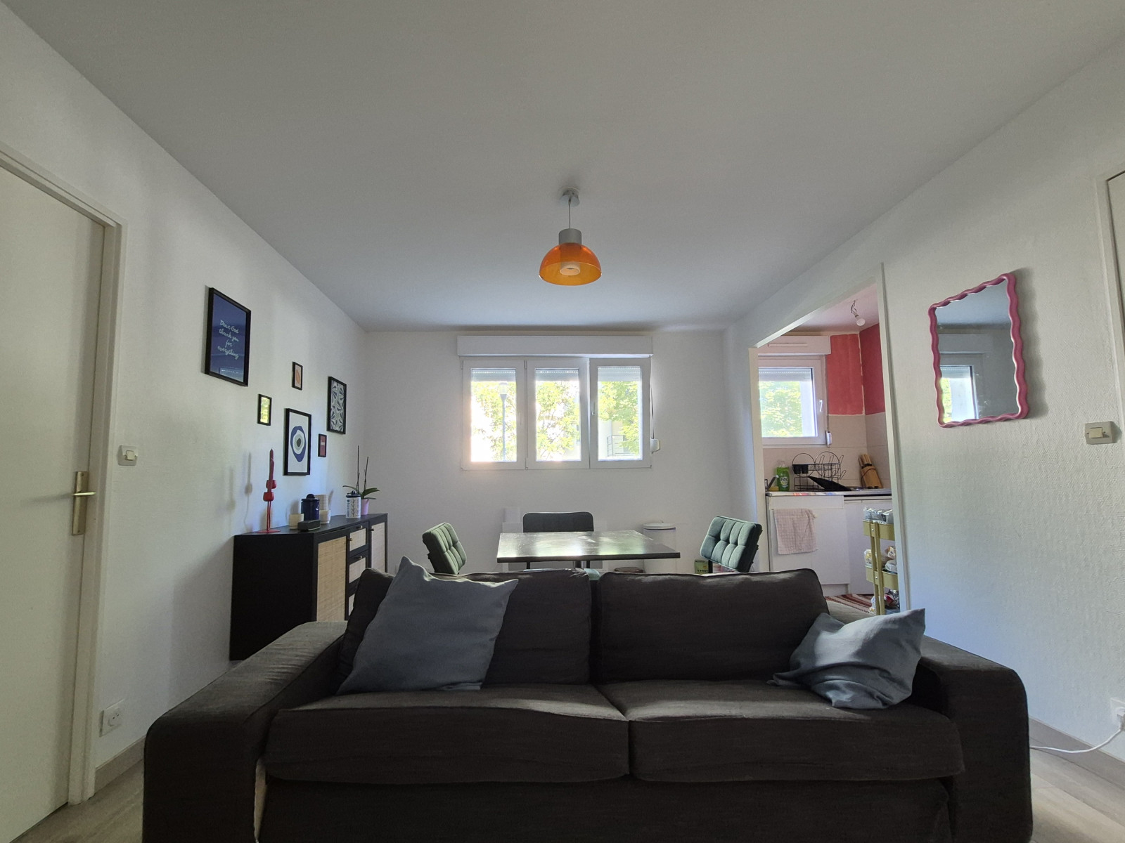 Profitez d'un espace de vie lumineux s'ouvrant sur une cuisine fonctionnelle, d'une chambre confortable, d'une salle de bains et d'un WC séparé.