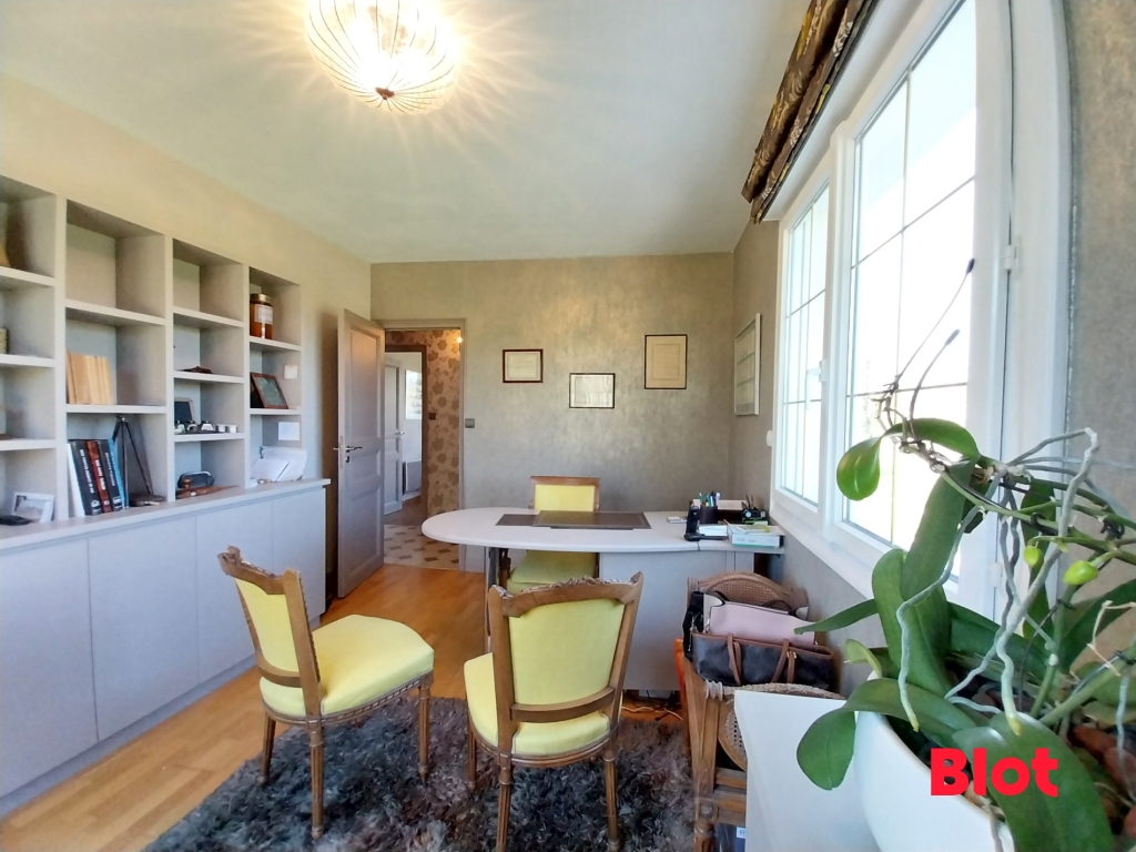 Dès l'entrée, vous serez accueilli par un vaste hall qui donne le ton : volumes généreux, matériaux de qualité et atmosphère chaleureuse. La pièce de vie, composée d'un salon-séjour lumineux avec cheminée insert, s'ouvre sur une véranda baignée de lumière, parfaite pour profiter de la vue sur le parc paysager. La cuisine, à la fois fonctionnelle et raffinée, ravira les amateurs de gastronomie. Un bureau, pouvant aisément faire office de chambre au rez-de-chaussée, complète ce niveau.