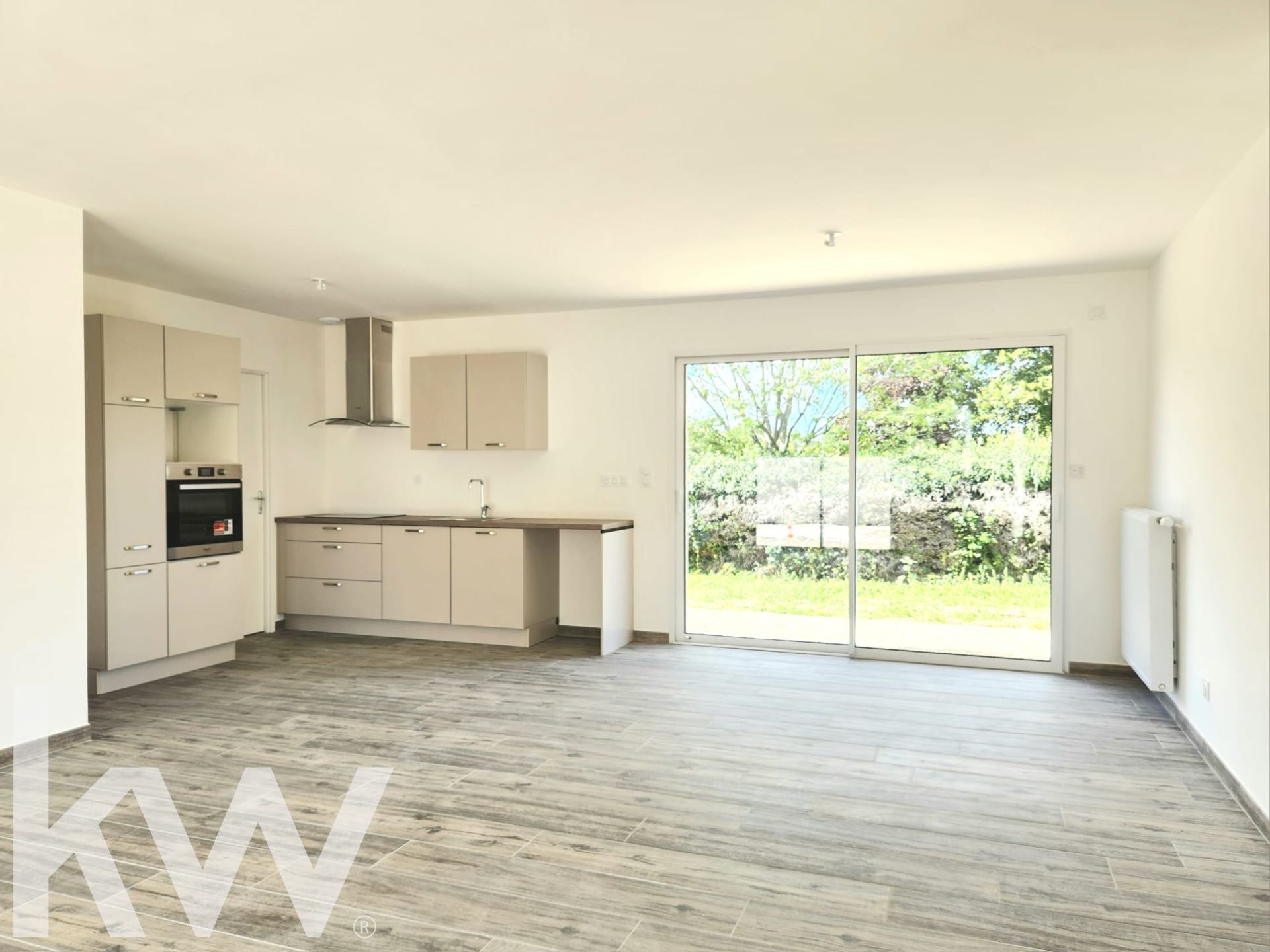 Elle se compose d'une grande pièce de vie lumineuse de près de 49 m² avec sa cuisine aménagée et équipée, de trois chambres, dont deux pouvant accueillir un futur dressing, d'une salle d'eau, dun toilette indépendant, un cellier et d'un garage.