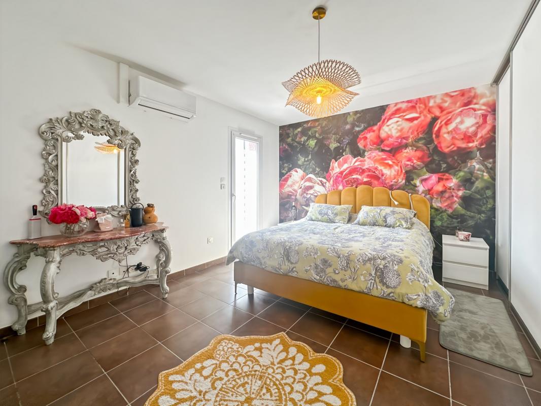 Charmante villa de plain-pied de 128 m², implantée sur un terrain paysagé de 1 090 m² avec piscine chauffée (2022, sous garantie, au clore avec bâche sécurisée).