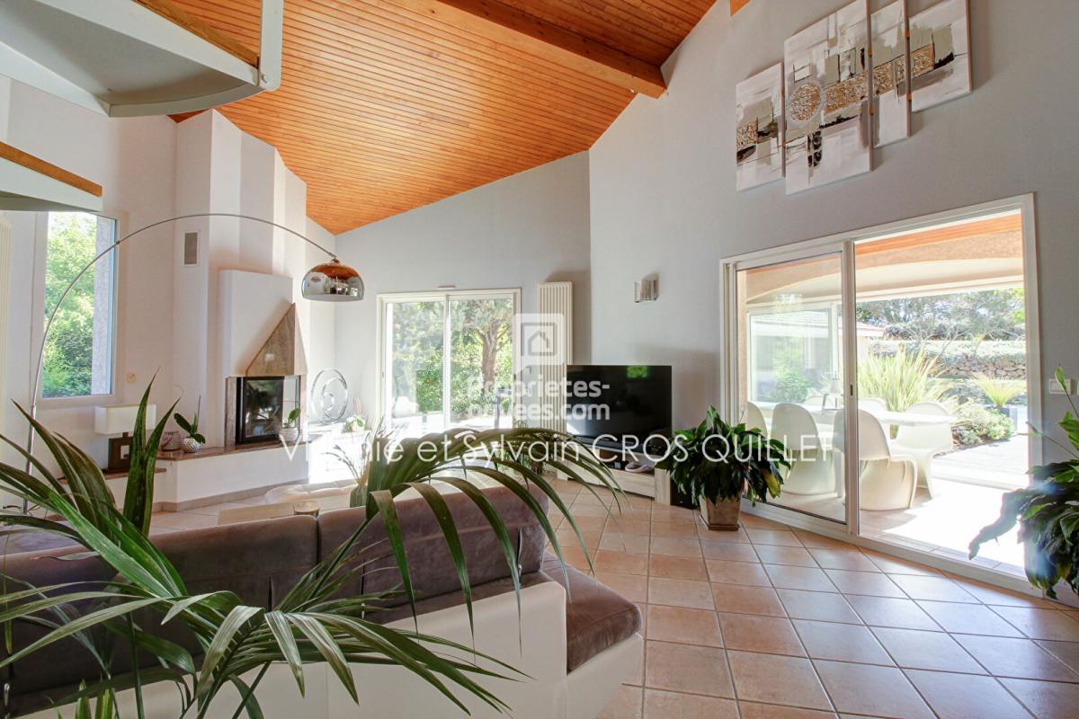Maison entièrement tournée vers son bel environnement extérieur, paysagé, aménagé, avec vue sur piscine.