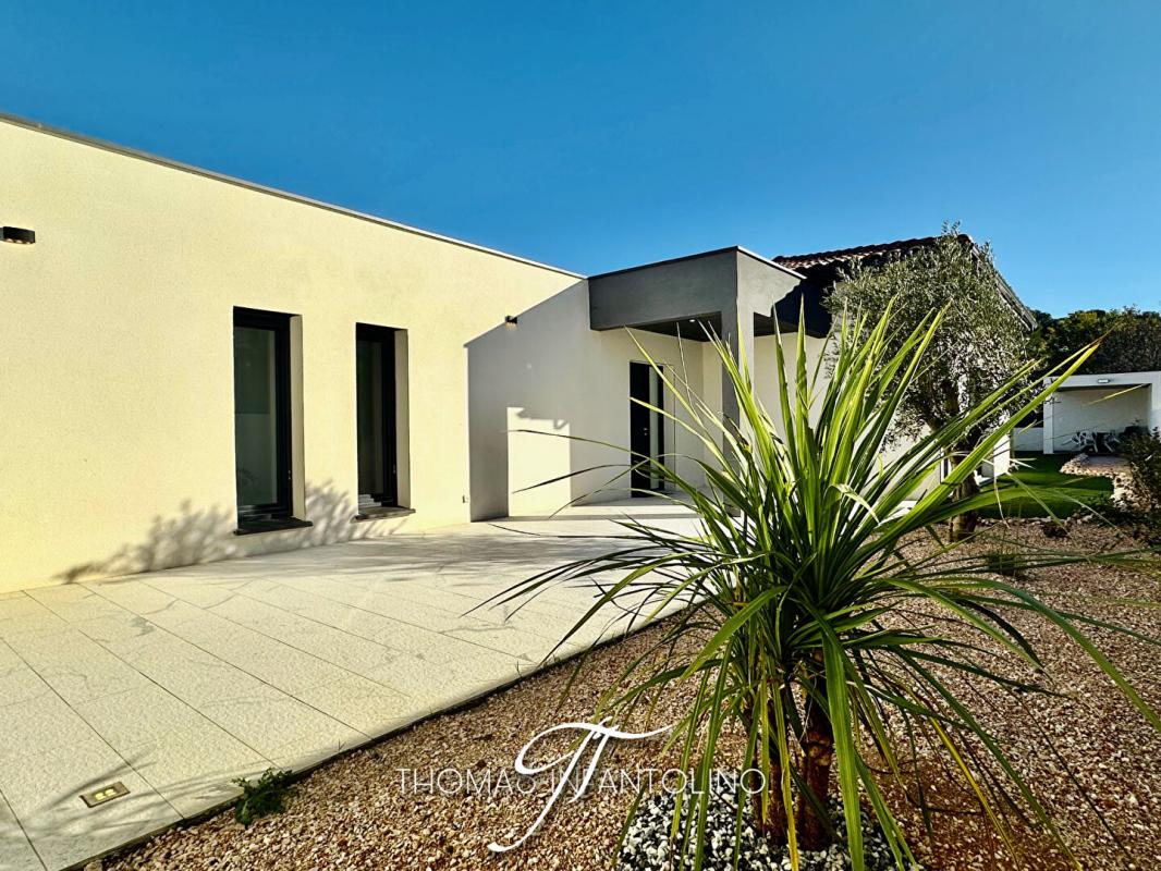 Découvrez cette superbe villa de plain-pied, construite selon les normes RT 2012, alliant confort moderne et cadre exceptionnel. D'une superficie d'environ 175 m², elle est implantée sur une parcelle de 856 m², entièrement aménagée et arborée.