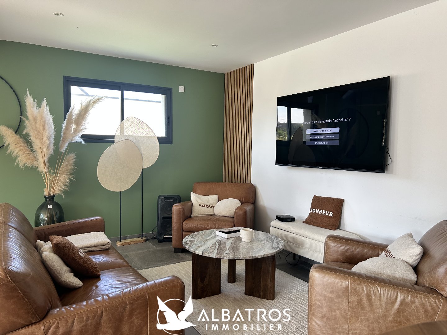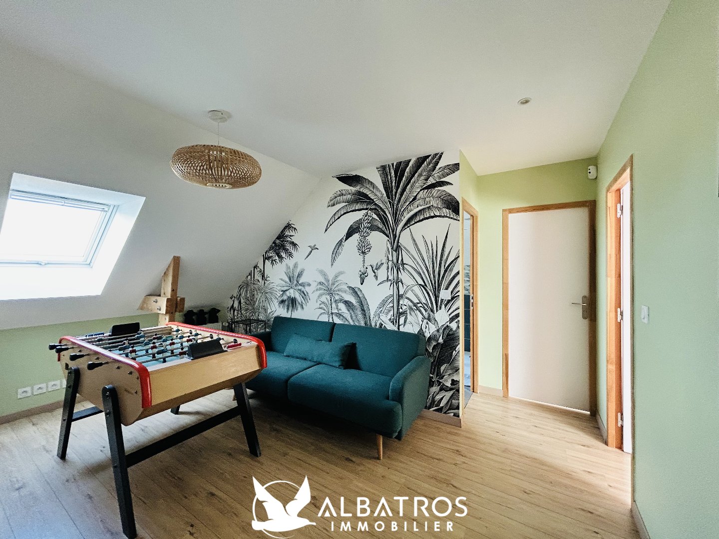 D'une surface habitable de 143 m² (153 m² au sol), cette maison offre de très belles prestations et un confort de vie optimal. Dès l'entrée, vous serez séduits par les volumes et la luminosité. La pièce de vie, d'environ 55 m², comprend un salon, une salle à manger et une cuisine ouverte, l'ensemble baigné de lumière grâce à son exposition sud-ouest et ses larges ouvertures donnant accès à une terrasse en bois, idéale pour les beaux jours. L'entrée dispose de rangements intégrés, très pratiques au quotidien.