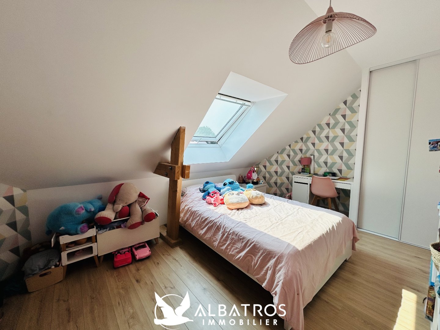 L'étage se compose de trois belles chambres avec placards, d'une mezzanine pouvant servir de bureau ou être aménagée en cinquième chambre selon les besoins, d'une salle de bain équipée à la fois d'une douche et d'une baignoire, ainsi que de WC séparés.
