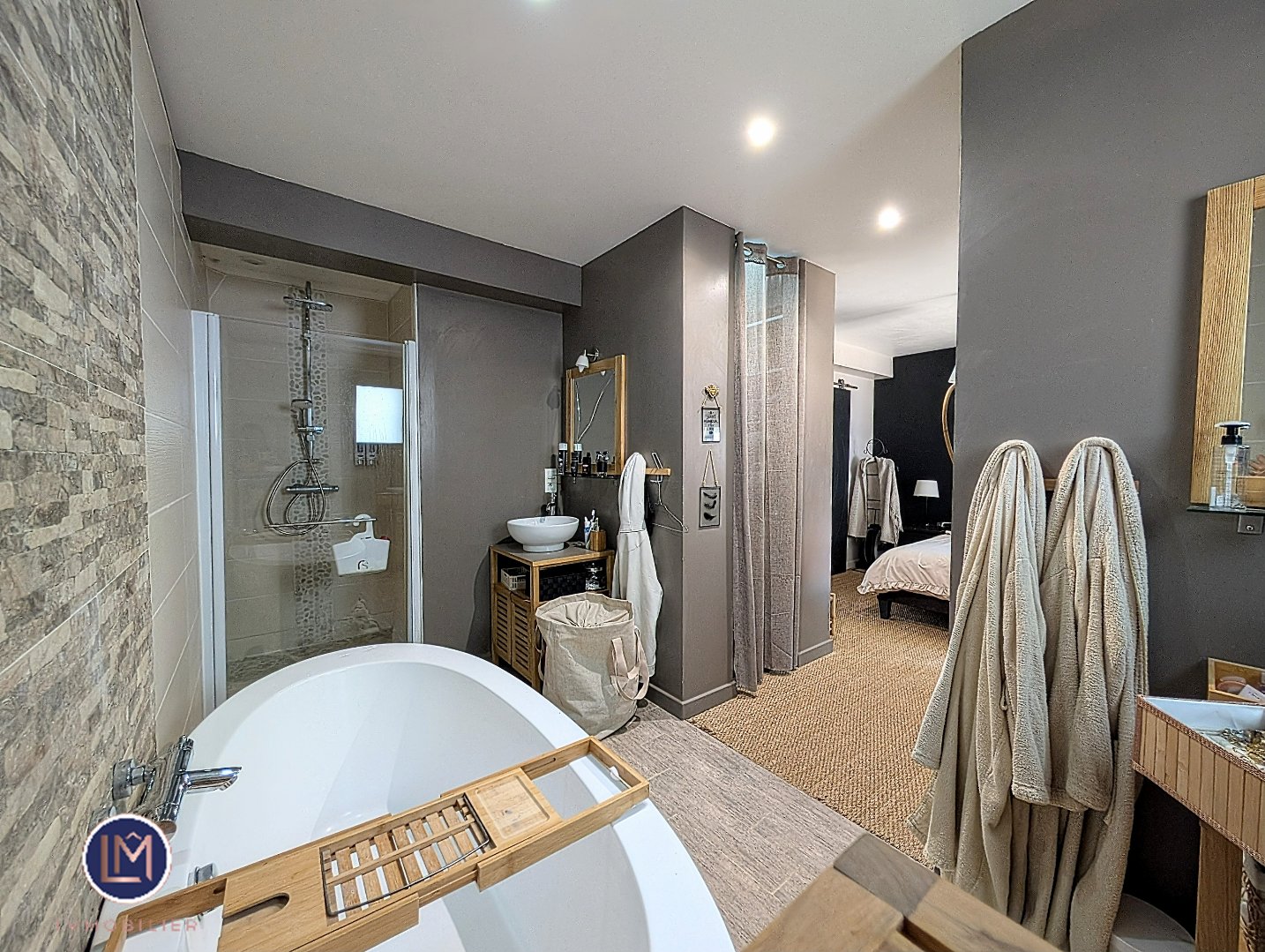 - Suite parentale au RDC (21 m²) : chambre + dressing + salle de bains (douche & baignoire).