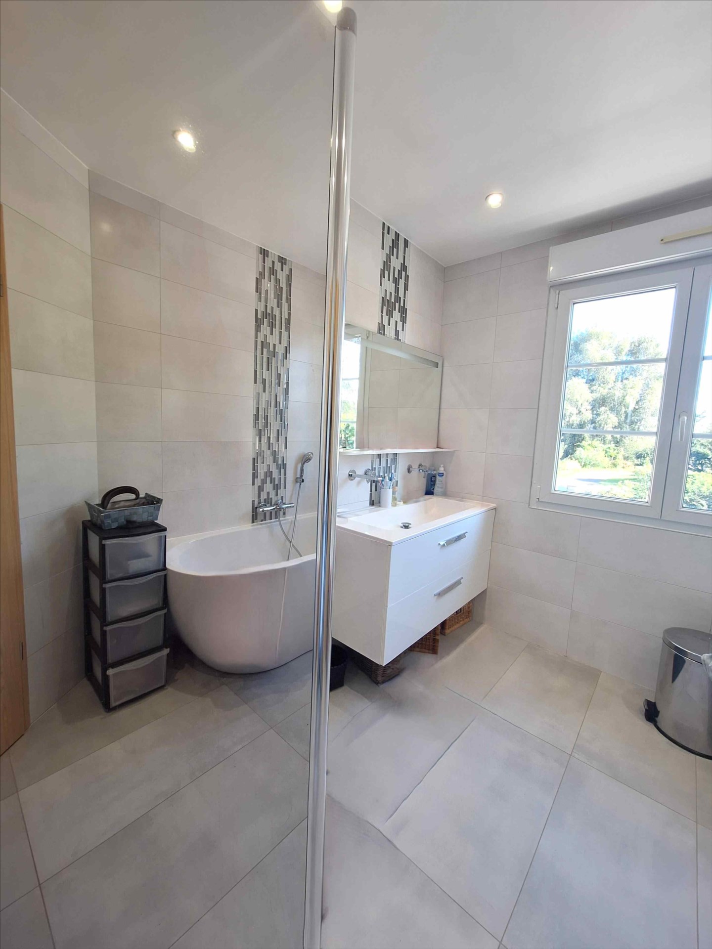 A l'étage, un bel et grand dégagement (avec balcon) vous mènera vers 4 chambres confortables, une salle de bains (avec douche + baignoire + double vasque) et un second wc séparé.