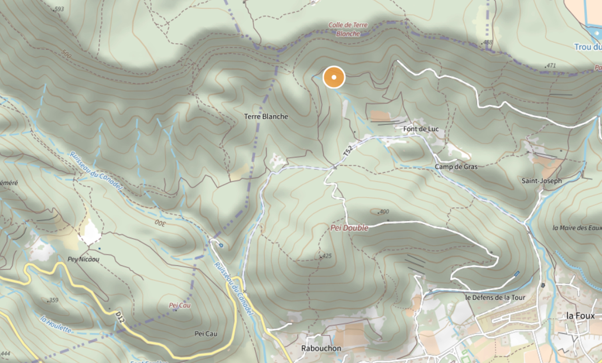 Retrouvez sur la commune de PUGET-VILLE ce terrain de 2589m2 en zone naturelle + EBC + risque géologique du PLU de la commune.