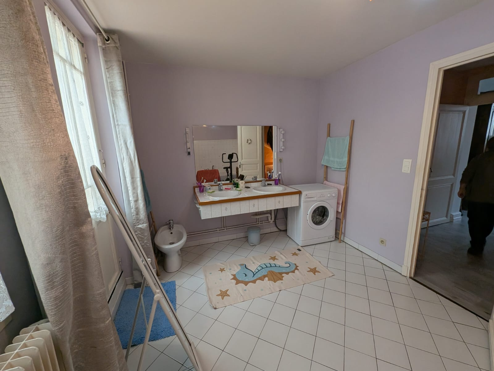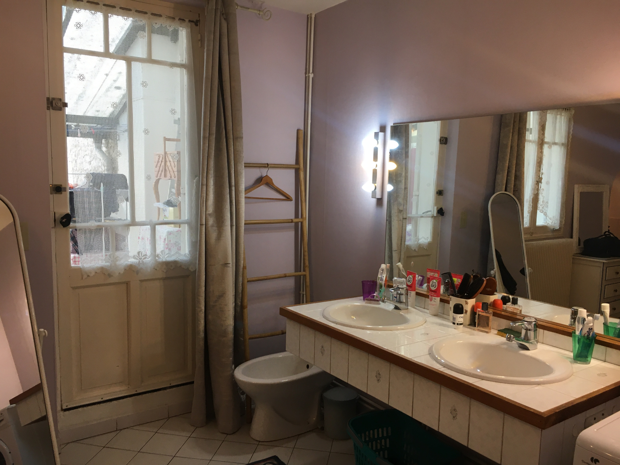 Le première étage propose une grande salle de bain avec douche et baignoire ainsi qu'une terrasse plein sud. Une chambre de 17m2 et un wc indépendant.