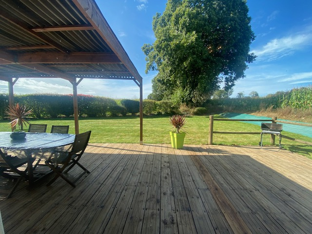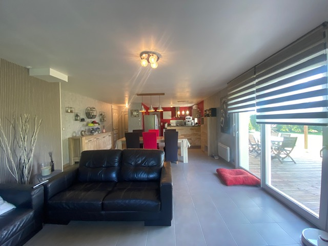 Proches commerces et écoles, très belle maison de plain-pied à VENDRE à BREHAN (56) composée : d'une entrée avec placard (3,06 m2), cuisine aménagée et équipée ouverte sur séjour/salon (47,60 m2), wc (1,54 m2), dégagement (4,96 m2), salle de bains (5,51 m2), 4 chambres (12, 42 m2, 12,48 m2, 10,91 m2, 10,55 m2) . Terrasse avec pergola (70 m2). Garage attenant (32 m2) avec coin buanderie. Un autre garage (50 m2). Terrain attenant, l'ensemble sur 836 m2. Prestations : tout à l'égout, ouvertures double vitrage.