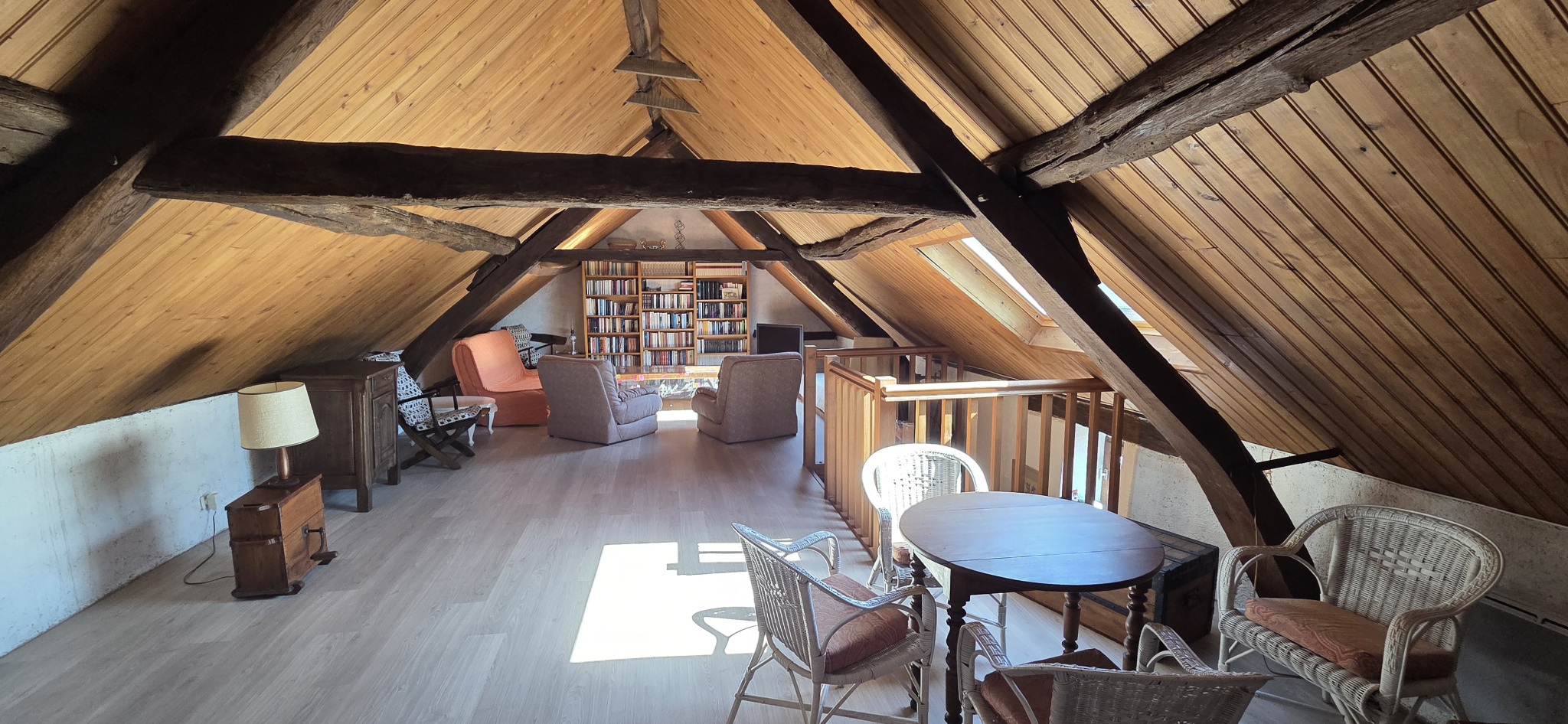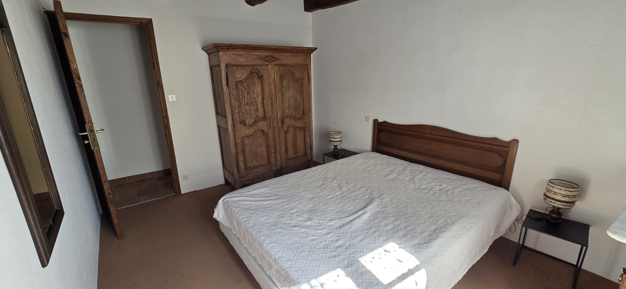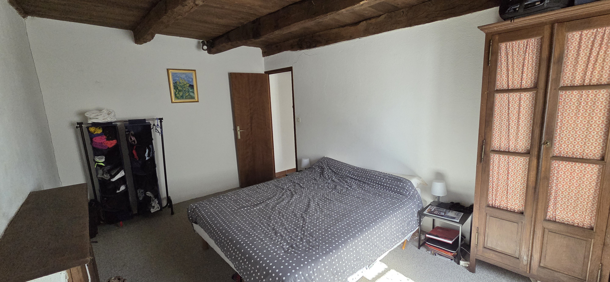 Le rez-de-chaussée se compose d'une entrée desservant une cuisine indépendante, un salon et une salle à manger. Vous y trouverez également deux chambres spacieuses, une salle d'eau en bon état et un WC séparé. Une grande terrasse accessible depuis ce niveau permet de profiter pleinement de l'extérieur. À l'étage, deux espaces distincts, séparés par une porte, offrent la possibilité d'aménager une chambre supplémentaire et une salle d'eau selon vos besoins. La maison dispose d'une cheminée existante (remise en service possible) et de radiateurs électriques.
