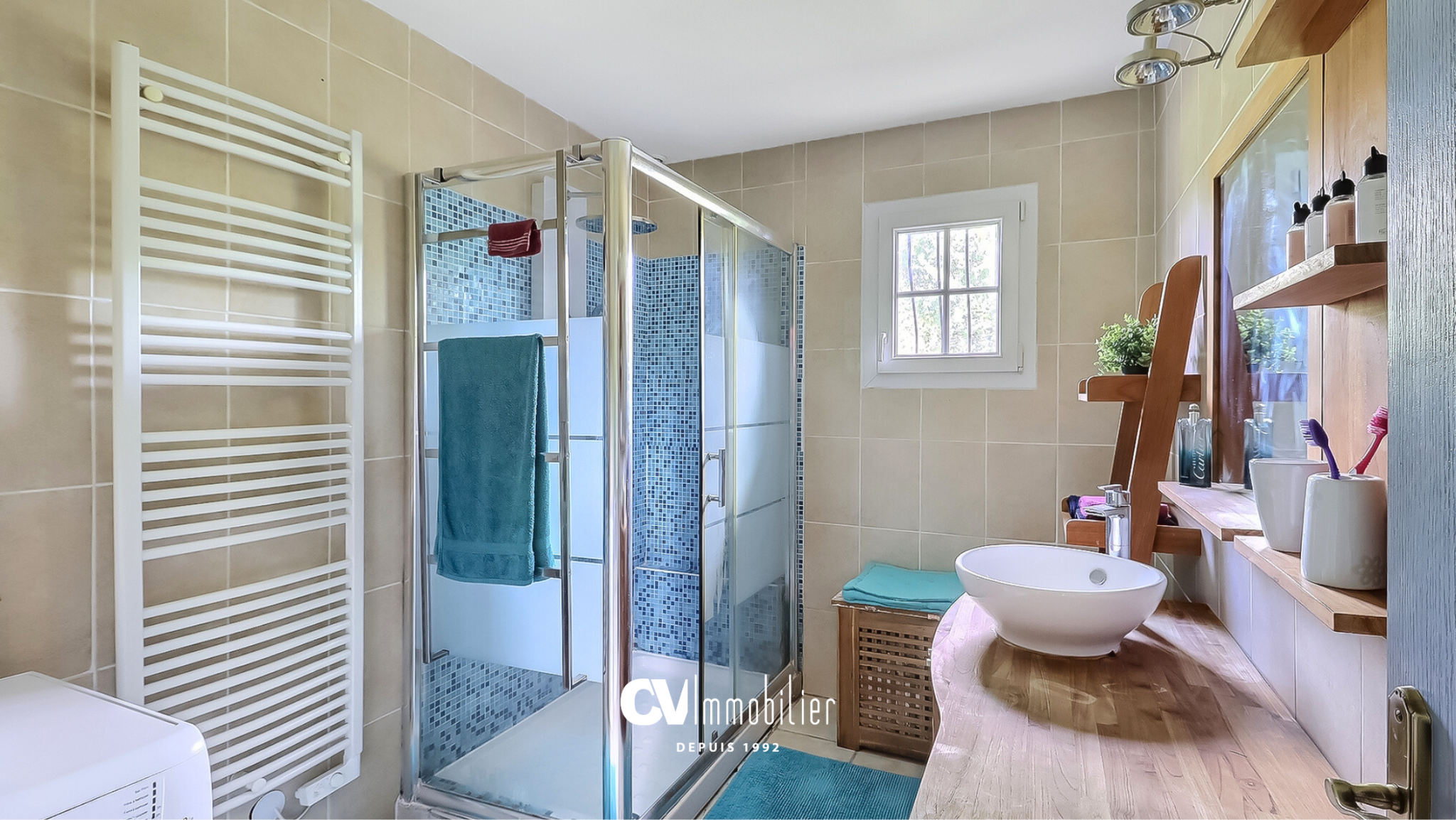 Prestations : les fenêtres sont en PVC double vitrage, le chauffage est électrique et au bois