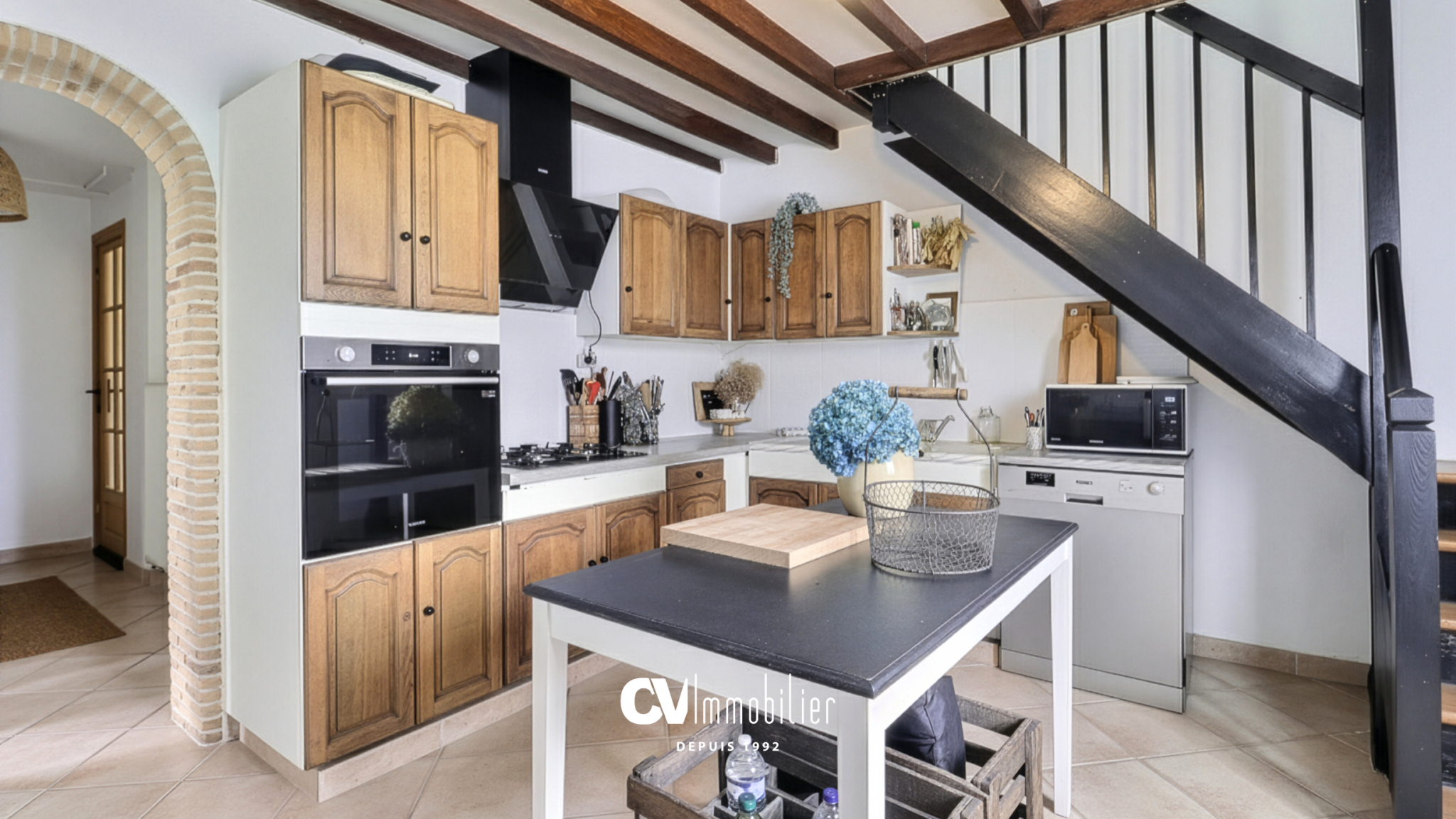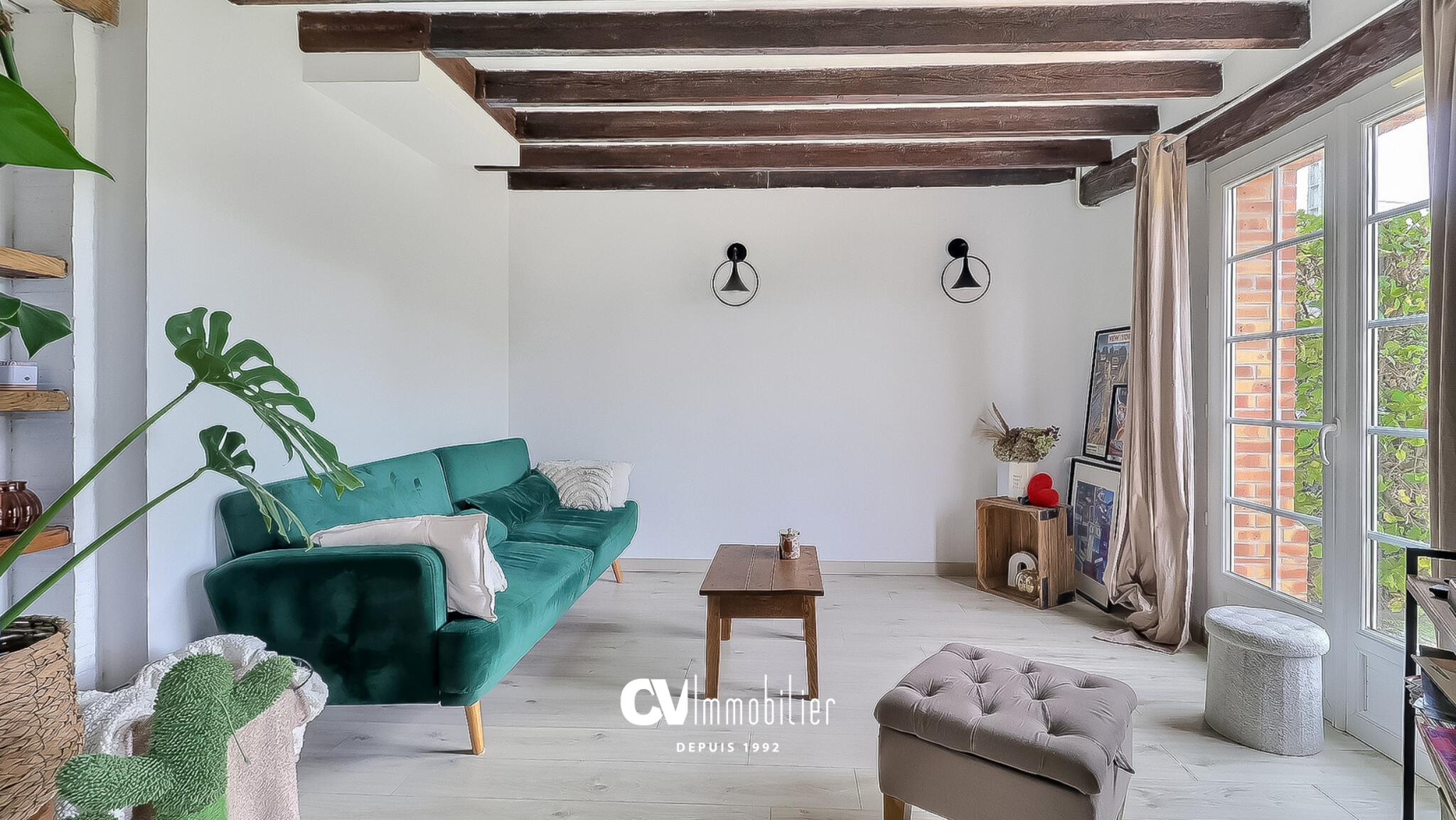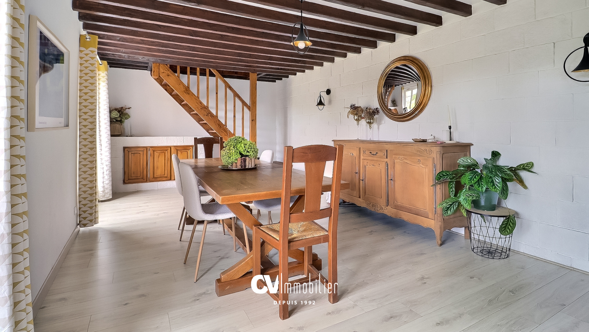 L'agence CV IMMOBILIER vous propose en EXCLUSIVITÉ cette maison traditionnelle avec garage, édifiée sur un terrain de 792 m2 à Daubeuf-la-Campagne comprenant :