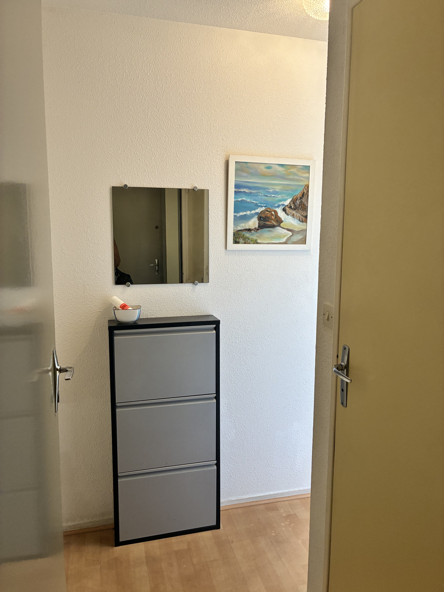 Il est composé d' une entrée avec placard, une salle de bains, wc séparé, cuisine ouverte sur séjour avec une chambre cabine.