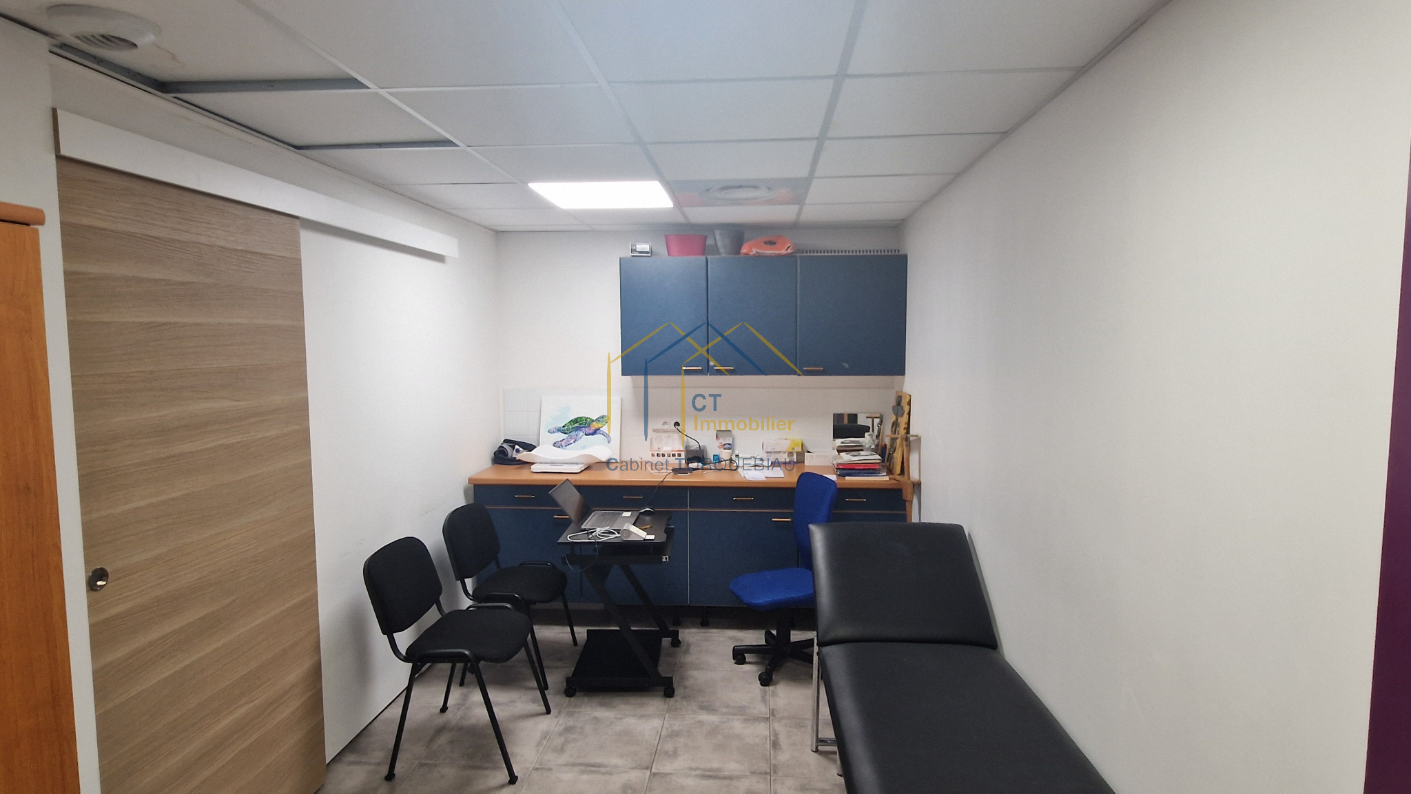 Le local libre de tout occupant (possibilité de location aux environs des 1700 EUR / mois), se compose: D'une grande salle d'attente, de quatre bureaux de 15 à 22m2, d'un wc aux normes handicapés, d'une réserve avec coin wc et douche - Excellent état et équipé de la climatisation réversible, menuiseries PVC double vitrage + volets roulant électrique ... - Grand parking gratuit à coté