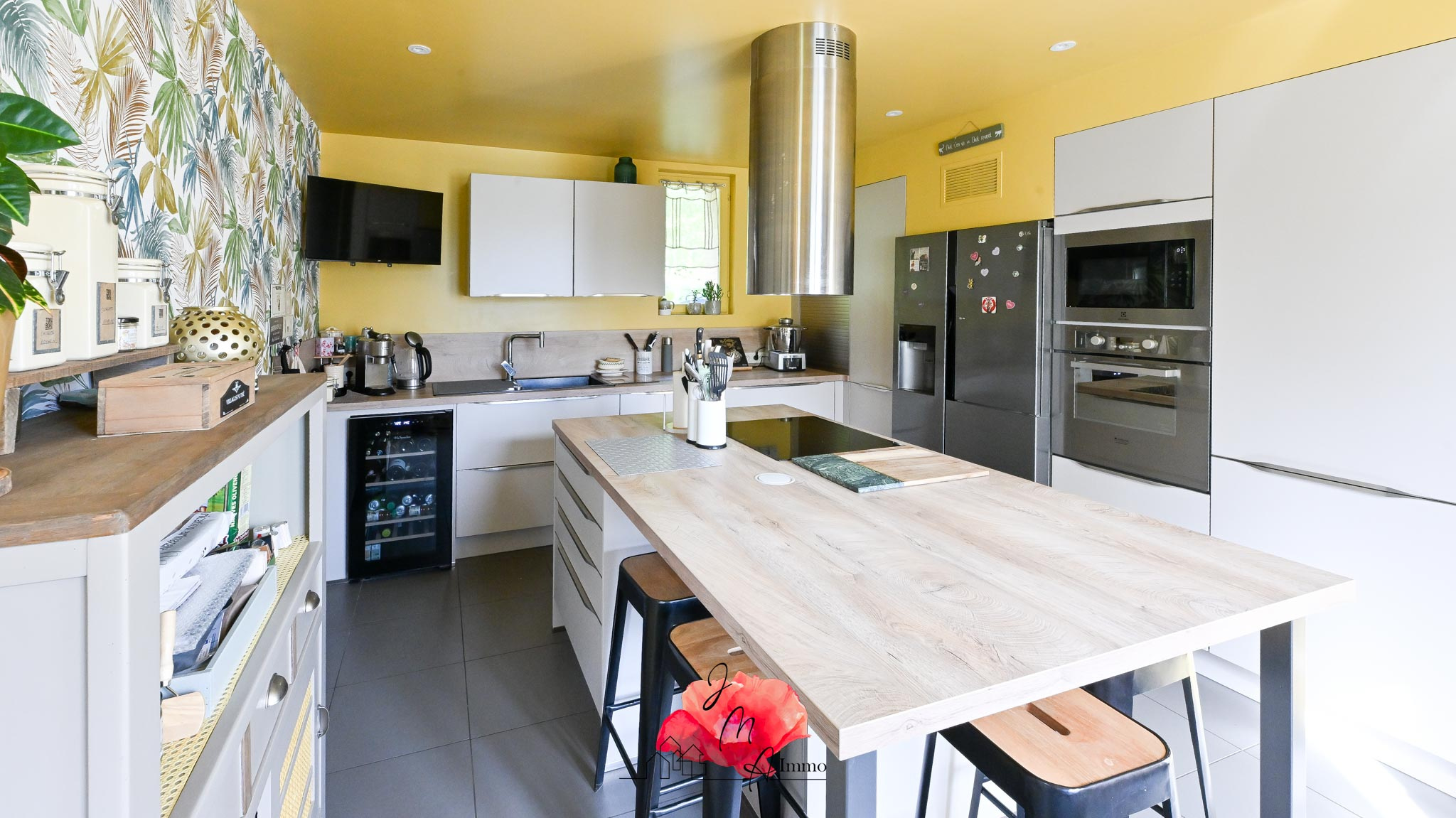 La cuisine récente, aménagée et équipée, allie fonctionnalité et convivialité, idéale pour recevoir famille et amis.