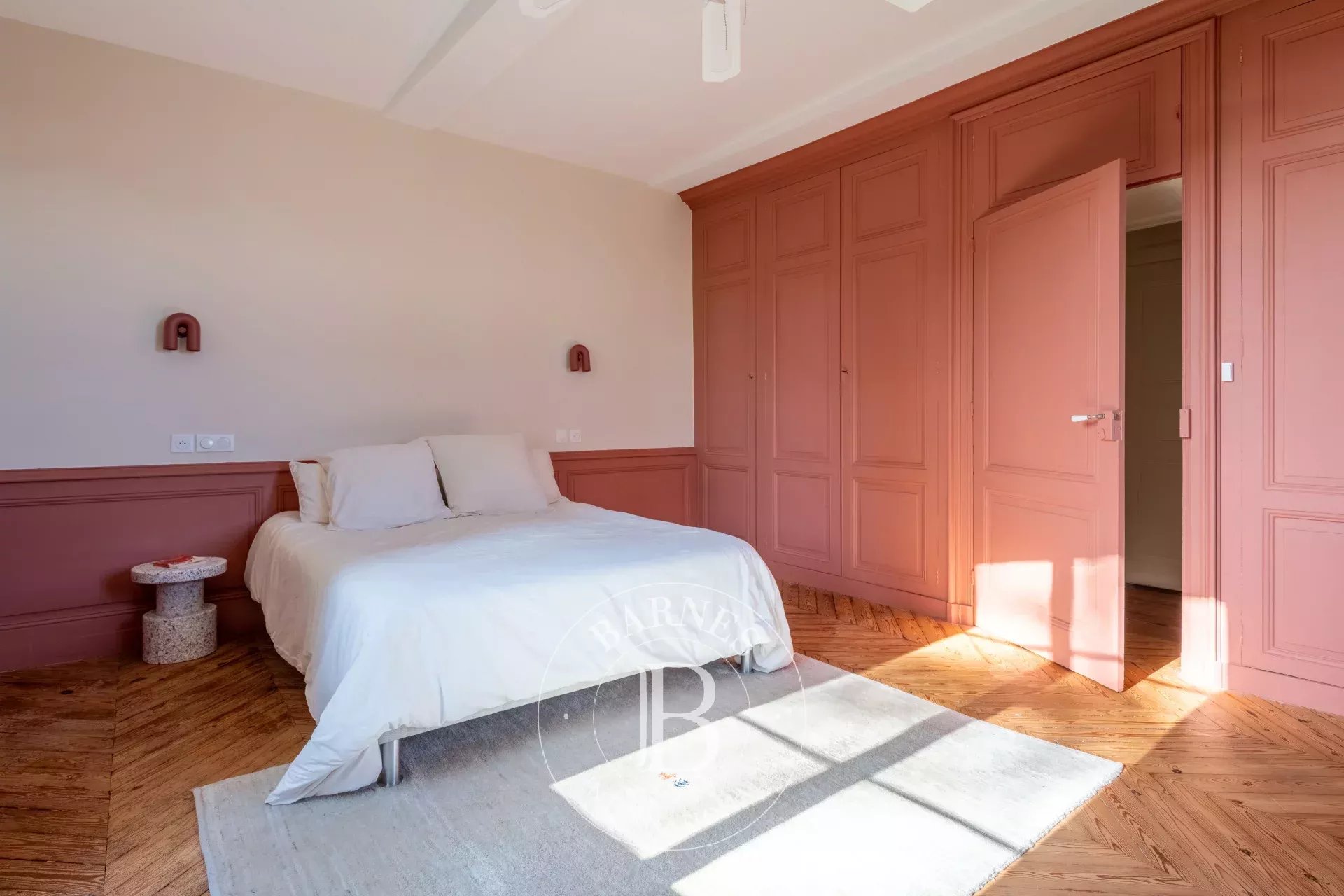 Une suite parentale avec dressing en bois massif et salle de bains attenante, exposée sud-est/sud-ouest.