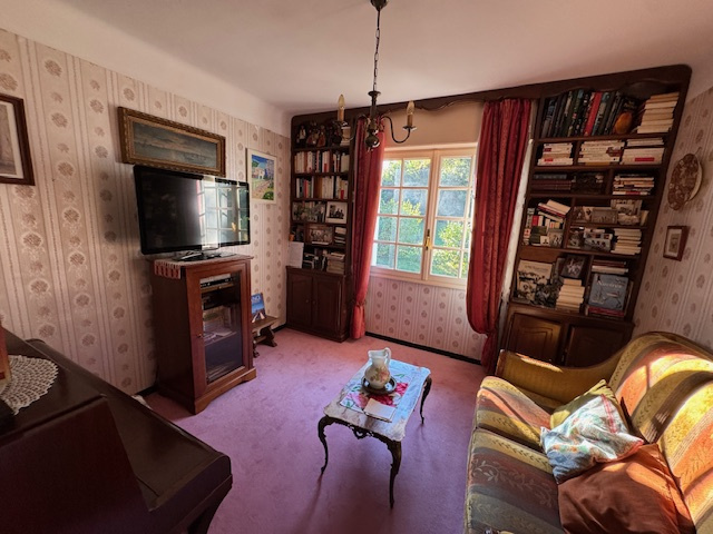 À l'étage, un salon-séjour lumineux de 25 m2, une cuisine indépendante, un bureau, une salle de bain, un WC séparé, ainsi que deux autres chambres.