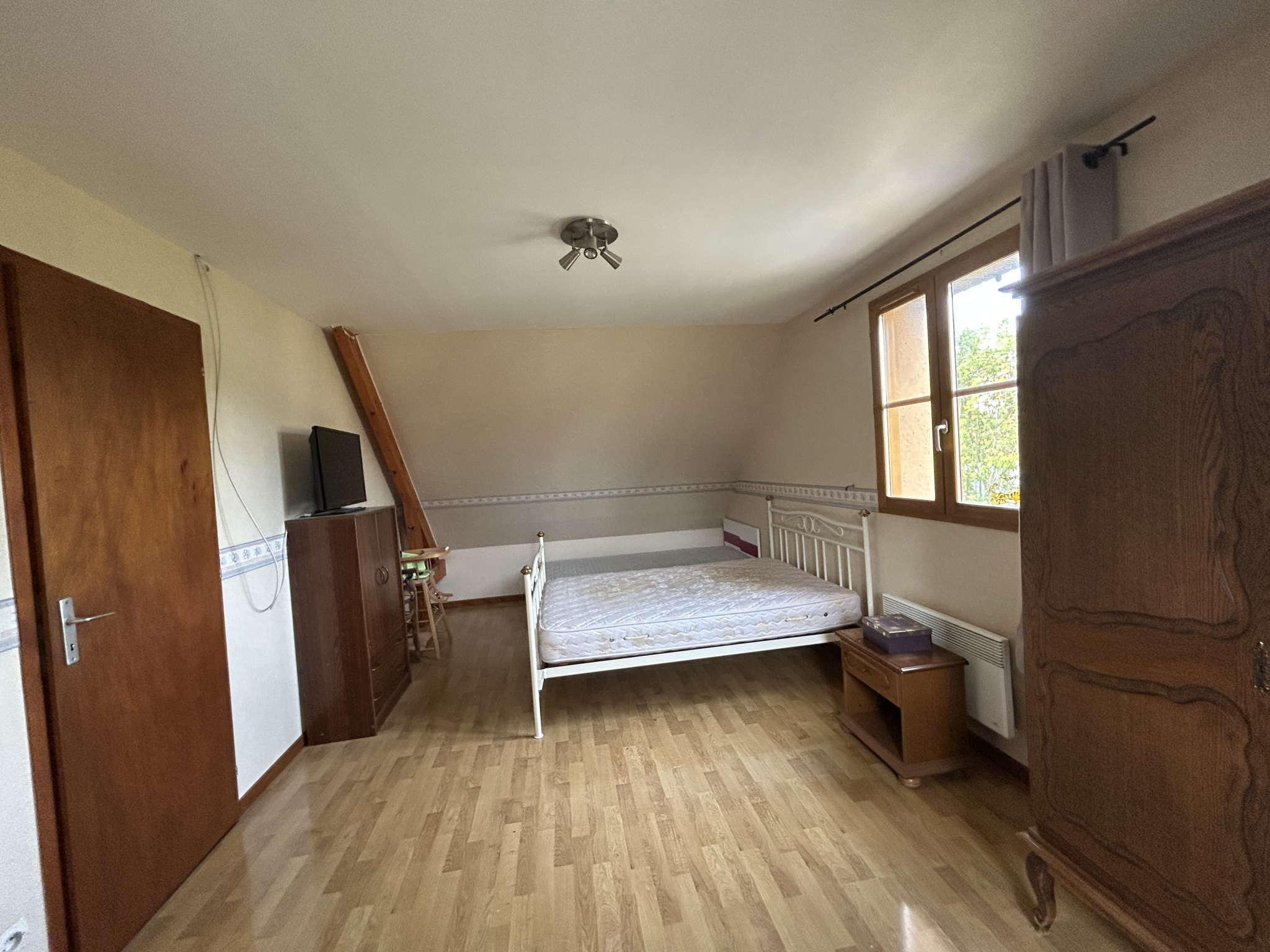 A l'étage, un escalier mène à trois chambres supplémentaires et à un second WC, parfait pour accueillir une famille ou des invités.