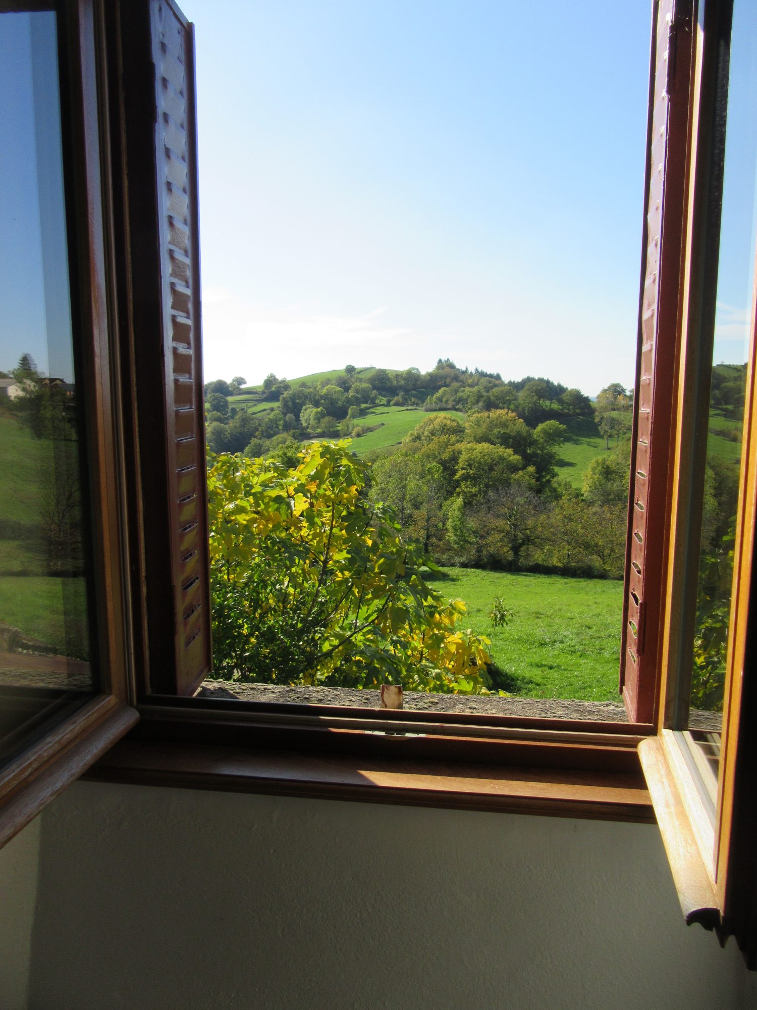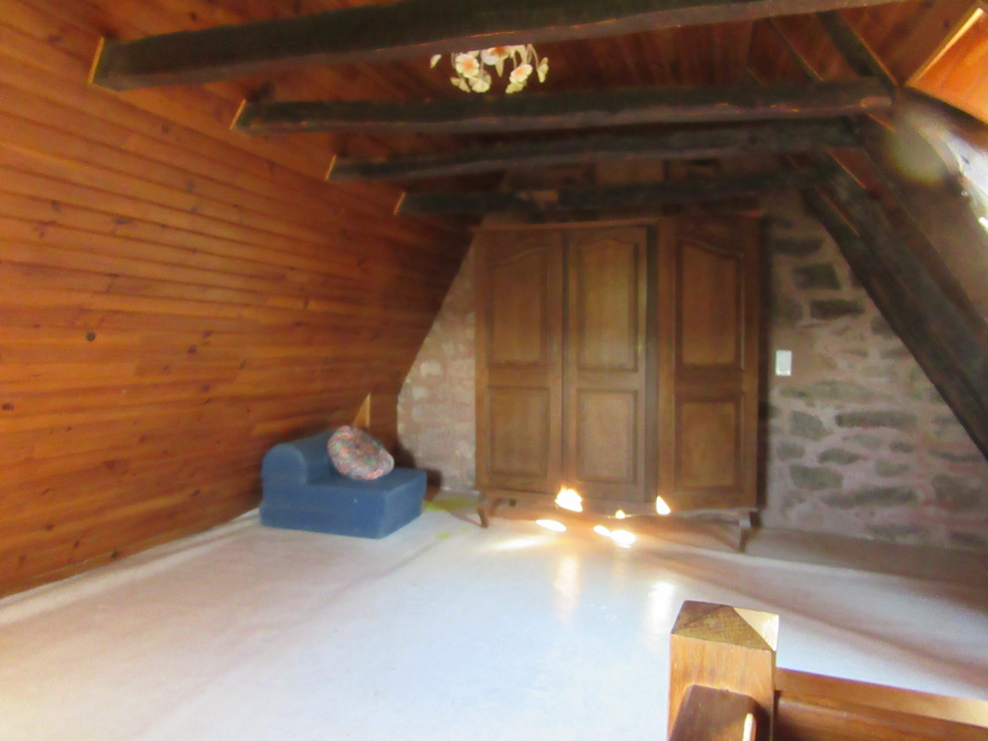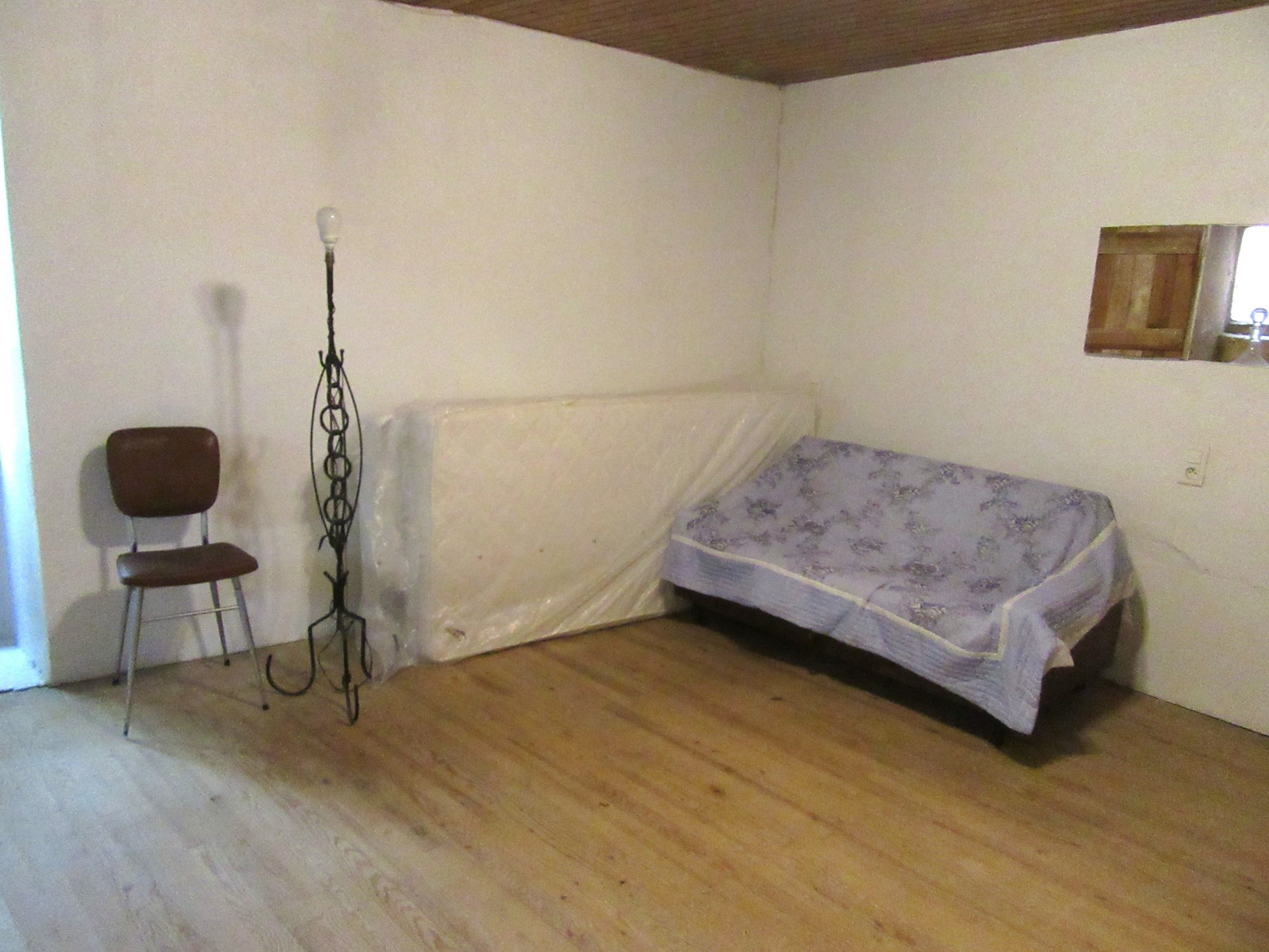 Construction traditionnelle en pierre et agglo crépi, menuiserie bois double vitrage, chauffage électrique + petit poêle à bois, assainissement collectif.